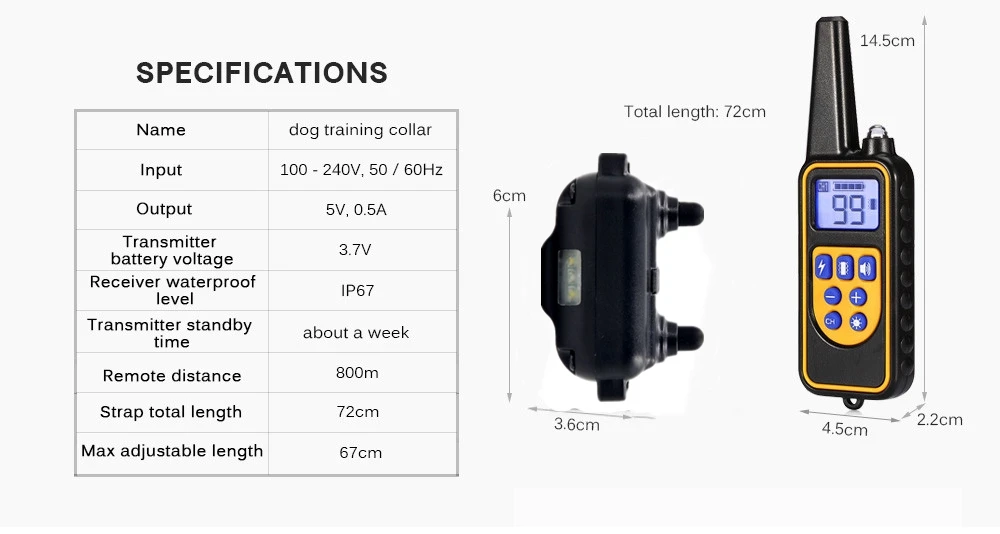 Ошейник для дрессировки собак, 800 м, водонепроницаемый, перезаряжа...