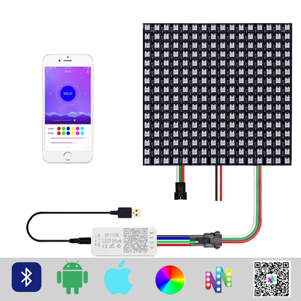 Светодиодный светильник с StripWS2812B цифровой Панель матрица WS2812 индивидуально адресный Модуль светильник SP110E Bluetooth контроллер постоянного тока USB 5V