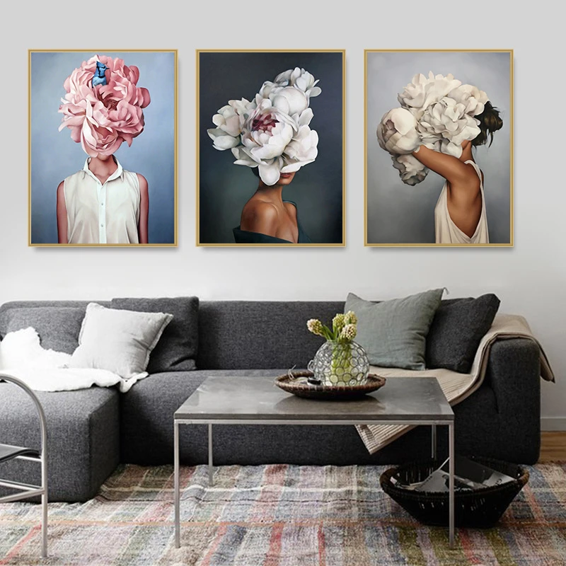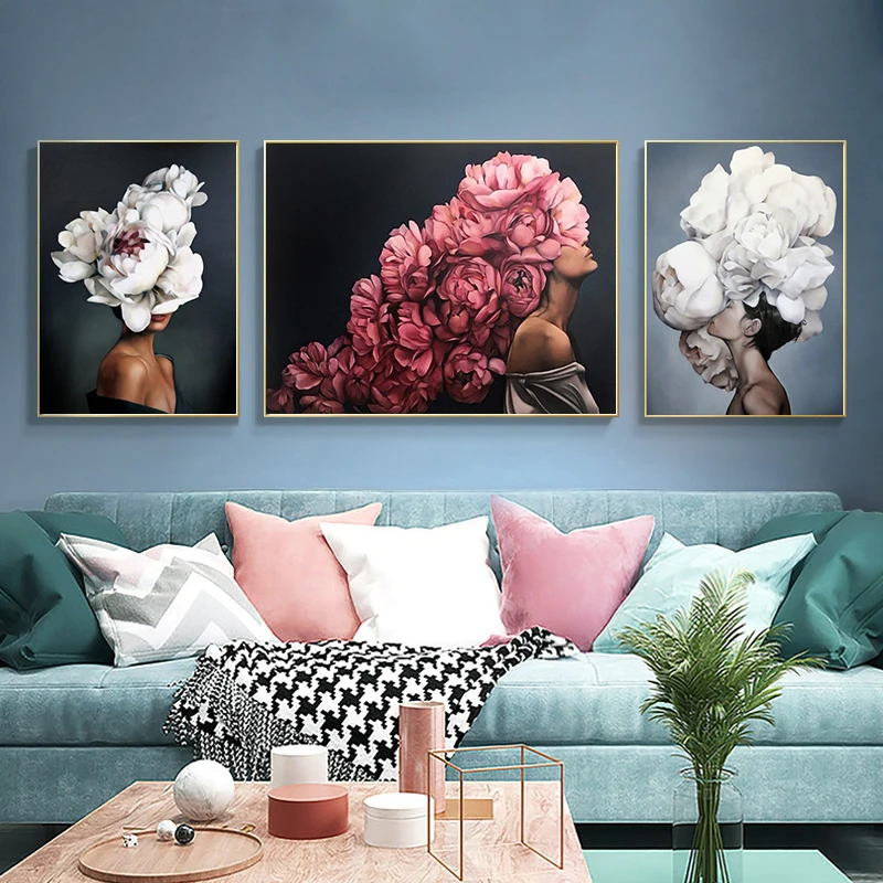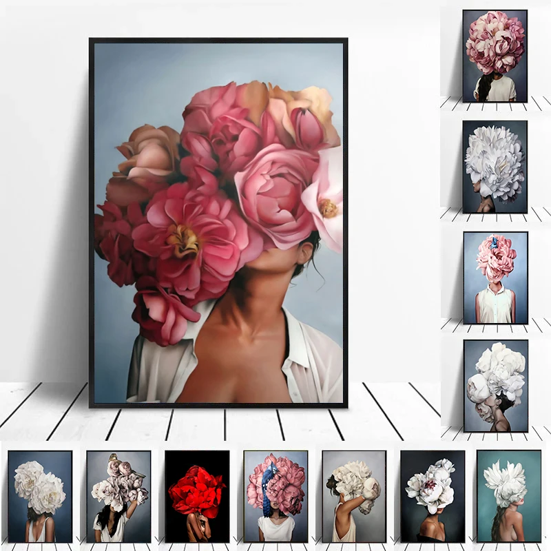Перьевые волосы Картина на холсте женщина Современная фигурка украшение дома картина Скандинавская личность искусство стены спальни гостиной плакат