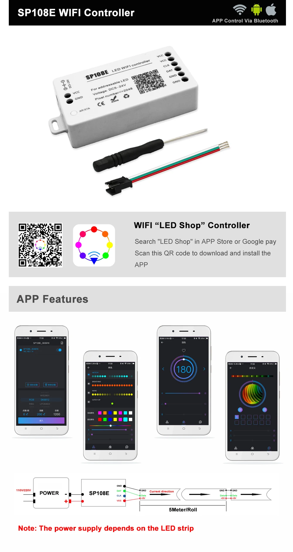 1x SP108E Bluetooth светодиодный контроллер