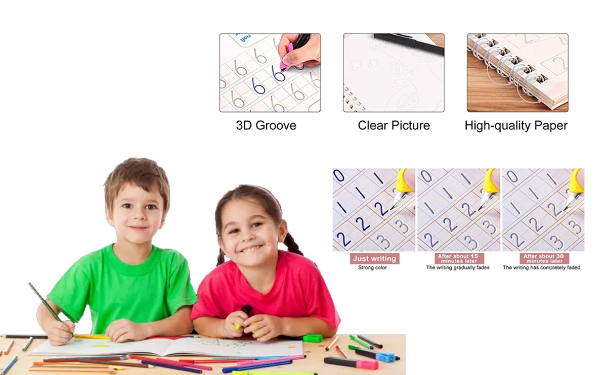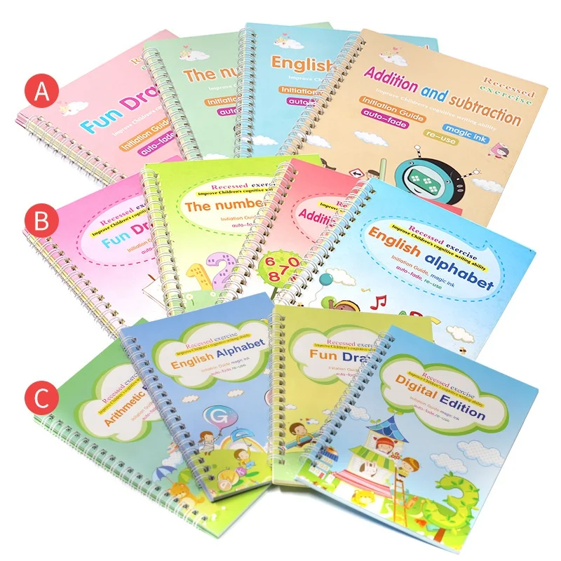 Почерк книга для копирования на кальку автоматически выцветает и может быть повторно использован. Почерк автоматически исчезает после высыхания, отлично подходит для многократной практики. Если ваши дети хотят научиться писать, необходимо использовать многоразовый магический набор копирайтеров.