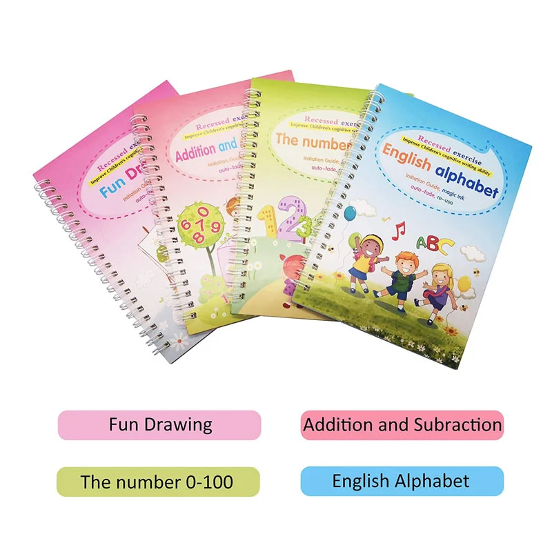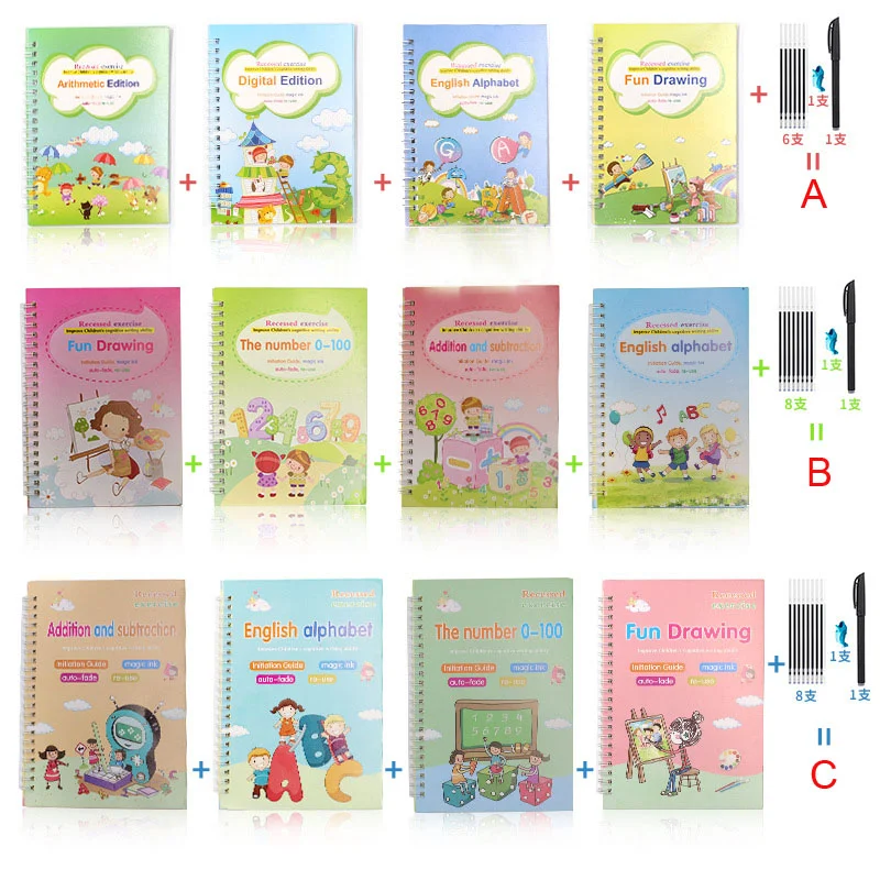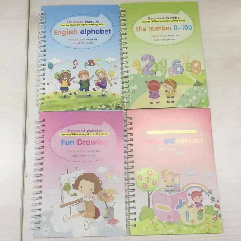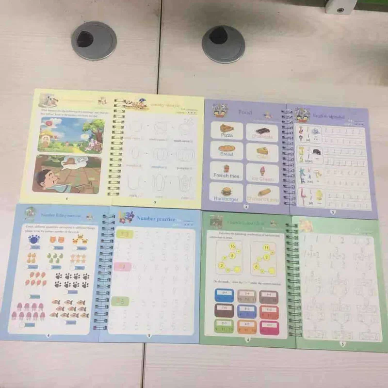 4 книги + ручка, книга для магических тренировок, детская игрушка, наклейка для письма, английская тетрадь для каллиграфии, игрушки Монтессори
