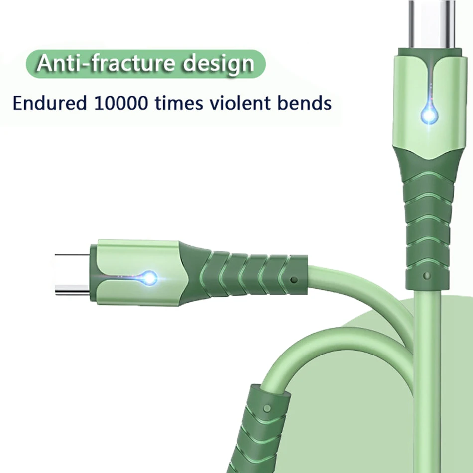 Жидкий Силикон 5A, Сверхбыстрая зарядка, кабель со светодиодной под...