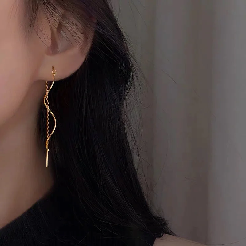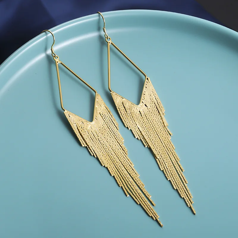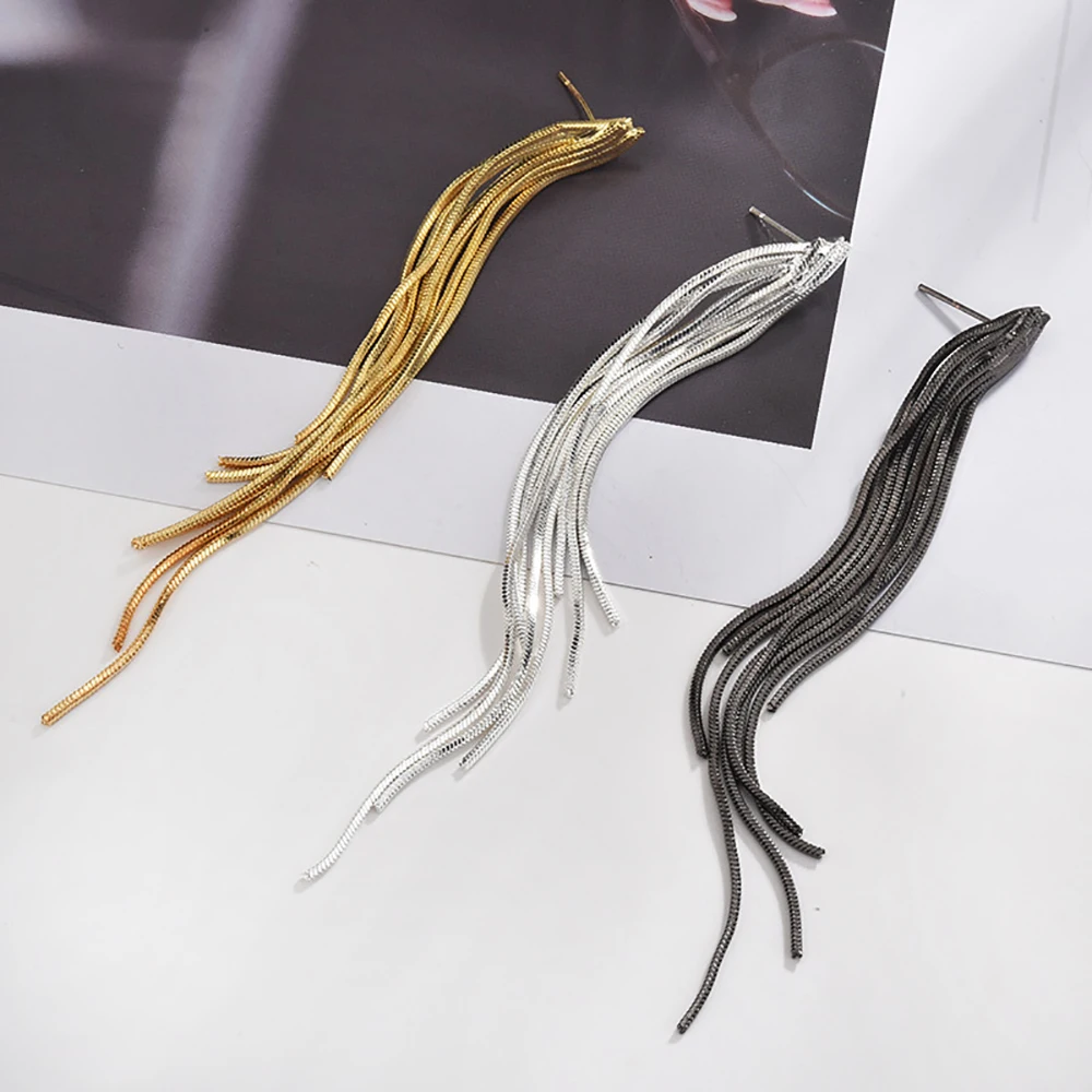 Модные длинные висячие серьги-кисточки золотого цвета, винтажные металлические массивные серьги с бахромой, изящные Висячие серьги для женщин