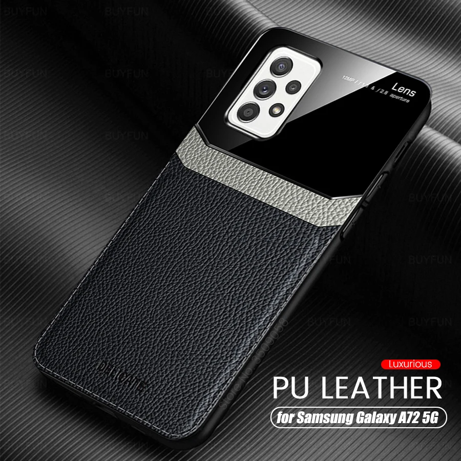 Чехол для телефона из оргстекла с кожаной текстурой для samsung galaxy a72 a 72 sm-a726fds 6,7 '', мягкий силиконовый бампер, противоударный чехол