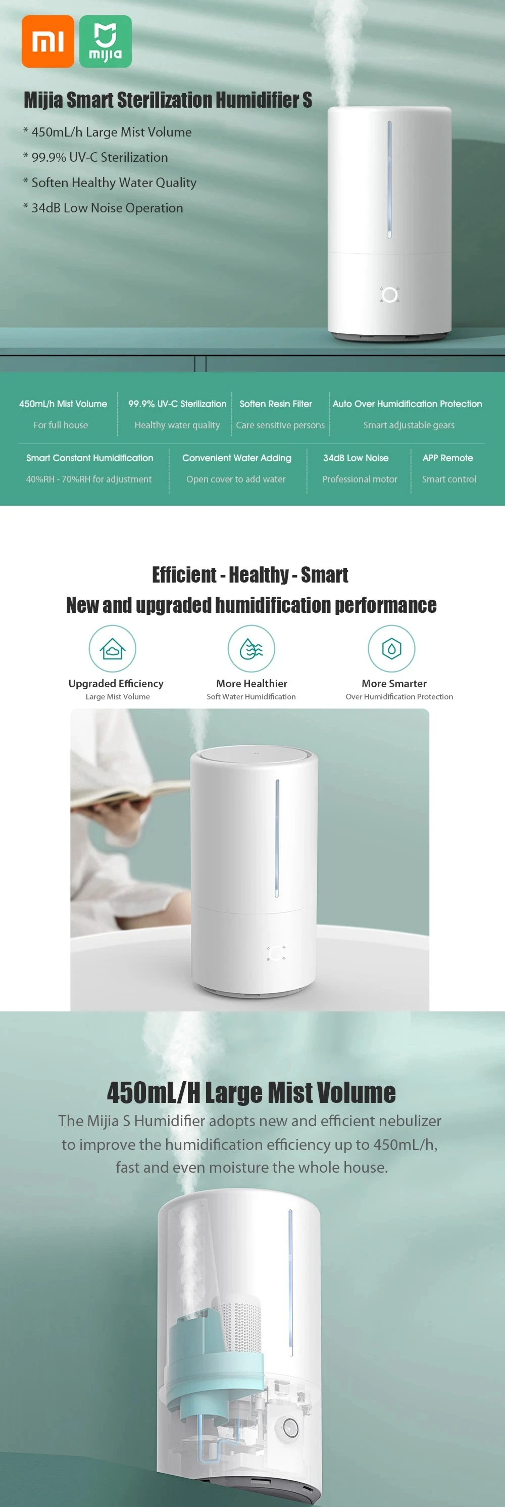 Xiaomi Mijia Смарт стерилизации увлажнитель S с 4.5L Большая Емкость резервуара для воды UV-C мгновенный стерилизации увлажнитель воздуха для дома
