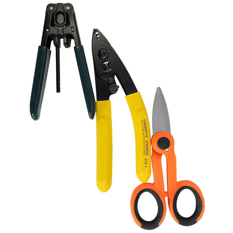 3 в 1 FTTH Splice волоконно-оптический набор инструментов CFS-2 волоконно-оптический инструмент для зачистки + CP-FB01 оболочка стриппера кабеля + кевларовые ножницы1 х кевларовая сценаФильтры