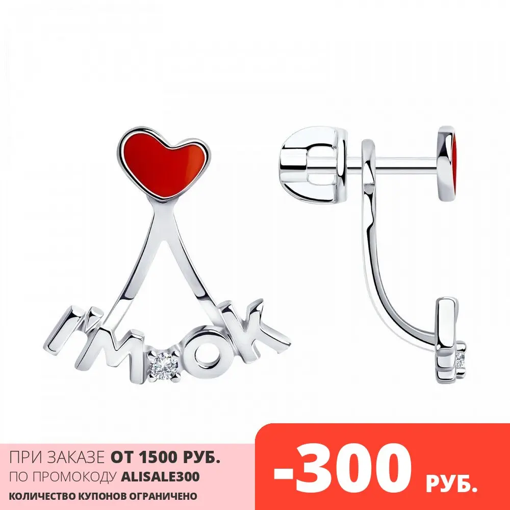 Серьги SKLV из серебра с эмалью и фианитами, Серебро, 925, Женские, Серьги 2021 тренд, Оригинальная продукция