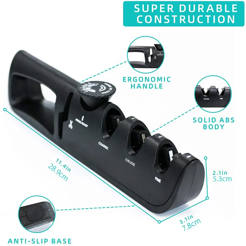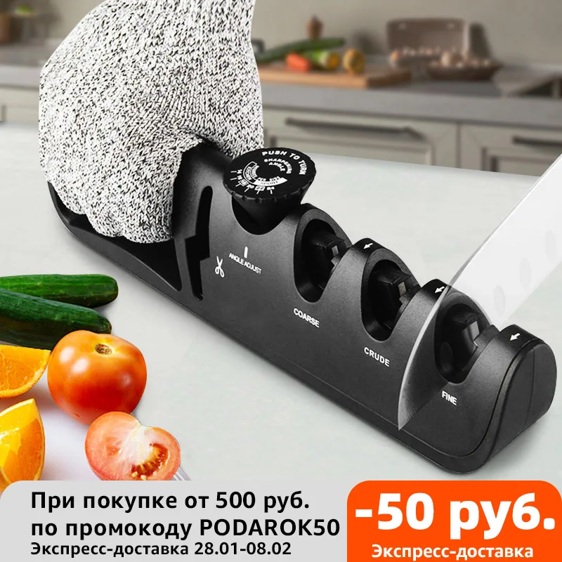 Точилка для ножей, 4 этапа, ручной точильный камень для ножниц, регулируемый угол, точильный камень из вольфрама, алмаза, керамики