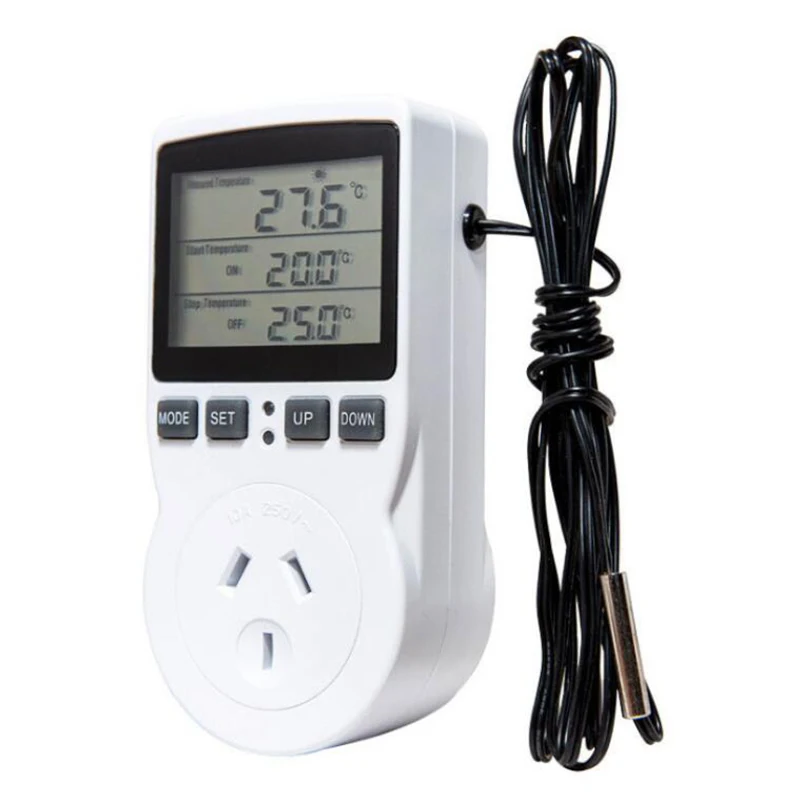 Функция: внешний датчик температуры может определять температуру. Установите начальную и конечную температуру. Циклическое время, время запуска и остановки, таймер. Он широко используется для контроля углеродного отопления, аквакультуры, теплиц, семейной жизни и других мест.Кнопка режима: нажмите Mode. ЖК-дисплей: режим контроля температуры. Режим синхронизации F01-F04. Режим синхронизации цикла F01, время запуска (ВКЛ)/время остановки (ВЫКЛ). F02 обратный отсчет в режиме, теперь Ti.s выключен, задержка (время запуска) включена. Режим отключения обратного отсчета F03, теперь Ti.s включен, задержка (время остановки) выключена, обратный отсчет завершен, выход выключен и операция завершенаF04 обратный отсчет запуск, обратный отсчет режим, теперь Ti.s выключен, задержка (время запуска) включена, после запуска задержки (время остановки) выключено, время остановки для завершения обратного отсчета, выключения выхода и выхода из операцииФункция коррекции температуры: долгое нажатие кнопки режима включения, коррекция температуры в реальном времени через 2 секунды. Диапазон температурной коррекции в реальном времени:-9,9 ~ 9,9 °C. Нажмите и удерживайте кнопку SET в течение 5 секунд, чтобы автоматически выйти без сохранения изменений. Нажмите и удерживайте кнопку MODE, чтобы выйти, сохраните коррекцию и модификацию смещения инструментаSn функция защиты от блокировки. Нажмите кнопку RESET, чтобы восстановить sn в течение одной секунды, а затем восстановить заводские настройки. Нажмите и удерживайте Режим в течение 5 секунд, затем режим нагрева или охлаждения начнет мигать, и вы сможете работать. Функция памяти после сбоя питанияТехнические параметры:Теория: регулятор температурыМодель: гнездо таймера термостатаМаксимальная температура измерения: 100 °C-119 °CТип дисплея: номерИспользование: Ho Use holdТип питания: зарядное устройствоТип: стоячий и настенныйРазмер дисплея: 2,0-3,9 дюймаДлина кабеля: 1 мУмное устройство: всегда открытоНапряжение: 230 В переменного токаМаксимальная нагрузка: 16 А (2) 3680 Вт. УДиапазон температур: -40 ~ 120 °CТочность: +/- 1%Точность синхронизации: максимум 10 минутРазомкнутая цепь (или ниже-40 °C), первая линия вспышки sn отображает «E1», -40 ~-45 °C, отображает-40 °CКороткое замыкание (или при температуре выше 120 °C), первая линия вспышки sn «E2», отображающая 121-129 °C, отображающая 120 °CНиже-10 °C или выше 100 °C, значение на дисплее после десятичной точки не будет отображатьсяРежим охлаждения, начальная температура больше конечной температурыМетод нагрева, начальная температура ниже конечной температурыТип вилки: вилка европейского стандарта, подходит для Индонезии, Германии, Франции, Испании, Италии и т. д.Цвет: белыйМатериал: пластикПосылка1 * Разъем регулятора температурыОн содержит только содержимое вышеуказанной упаковки и не включает другие продукты.Примечание: вспышка и различные дисплеи могут привести к тому, что цвет товара на изображении будет светильник отличаться от реального товара. Допустимая погрешность измерения +/- 1-3 см.