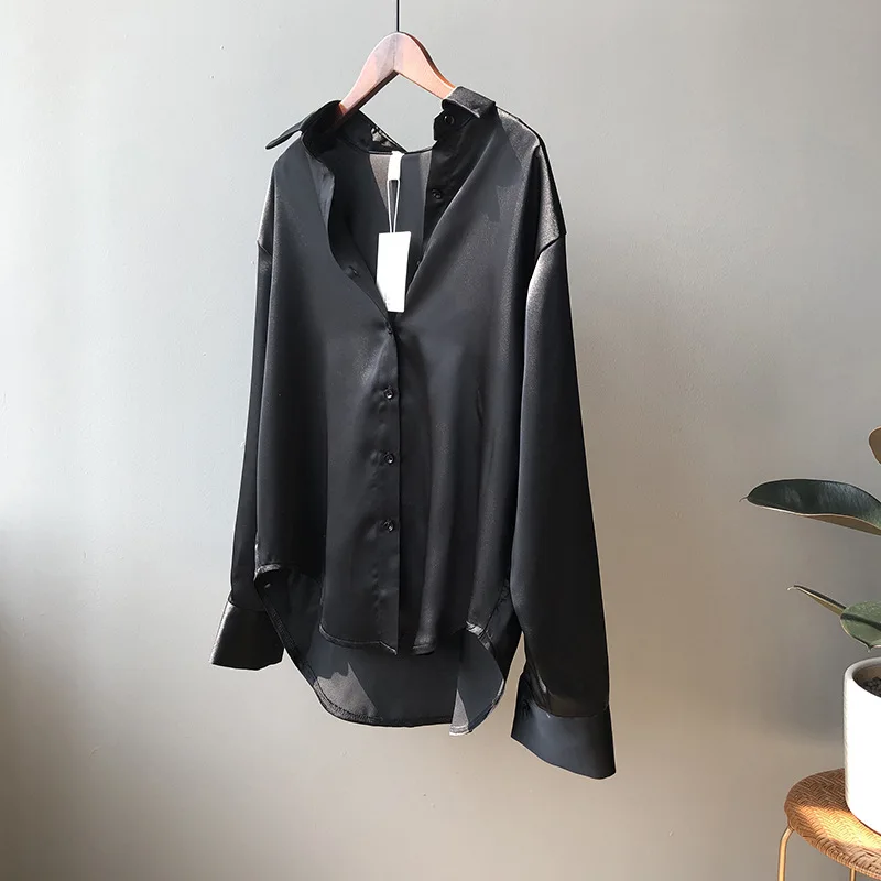 Женская атласная блузка, рубашка с длинным рукавом, лето 2020, 0726