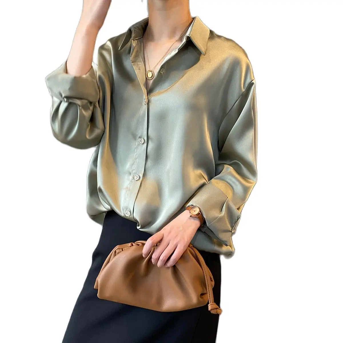 2022 модная атласная шелковая рубашка на пуговицах, винтажная женск...