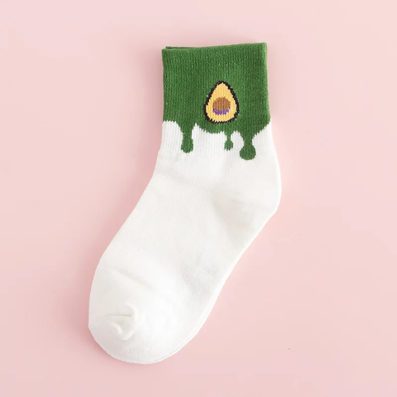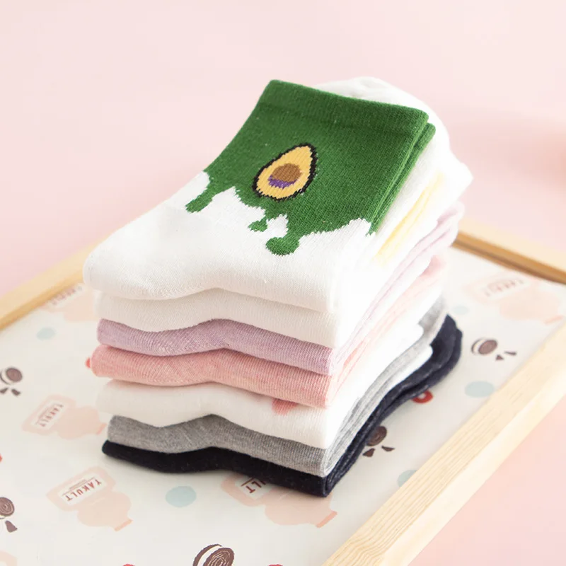 Носки женские Короткие хлопковые с фруктами, молоком, клубникой, бананом, авокадо