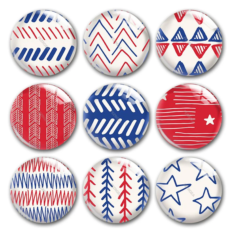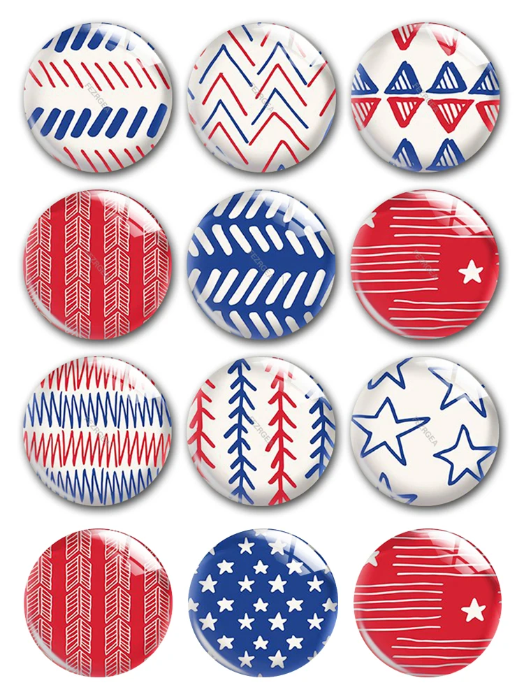 Ручная работа, синий и красный цвета июля 4th с геометрическим узором Круглый Фото Стекло кабошоны демо с плоской задней частью "сделай сам" для изготовления ювелирных изделий, фурнитура для аксессуаров
