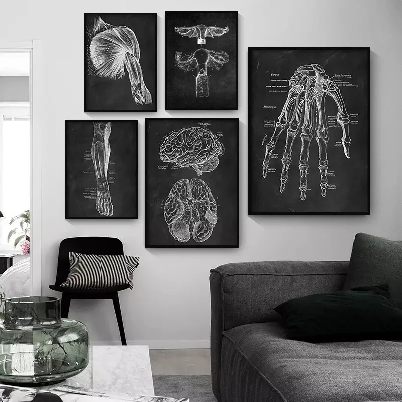Ретро медицинские принты, схема анатомии на английском языке, декор...