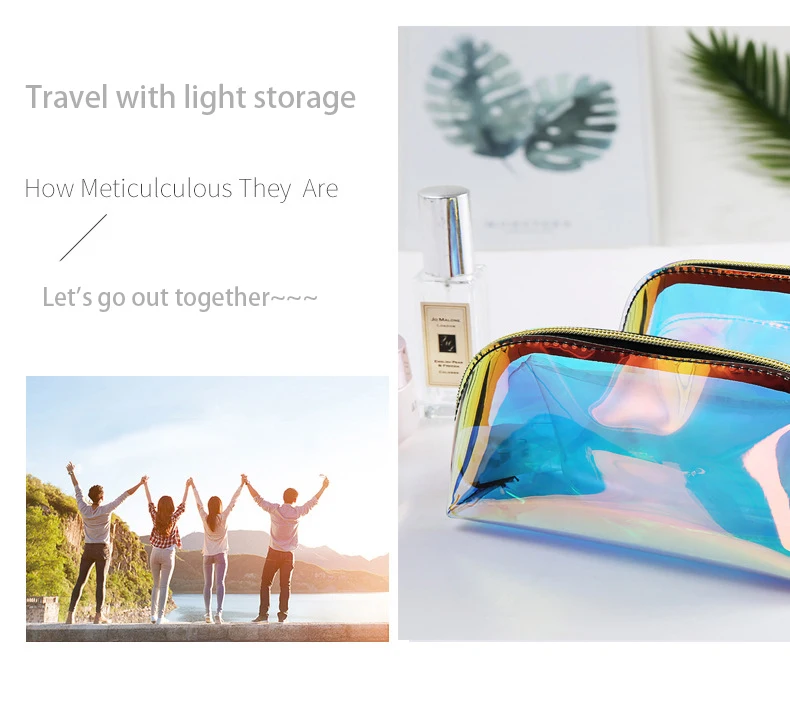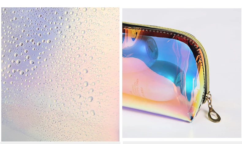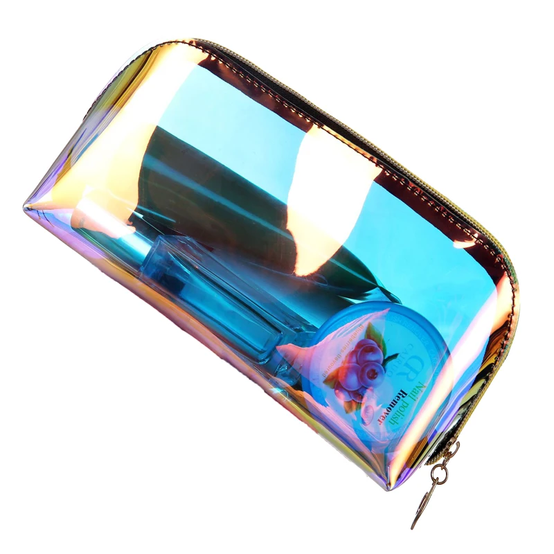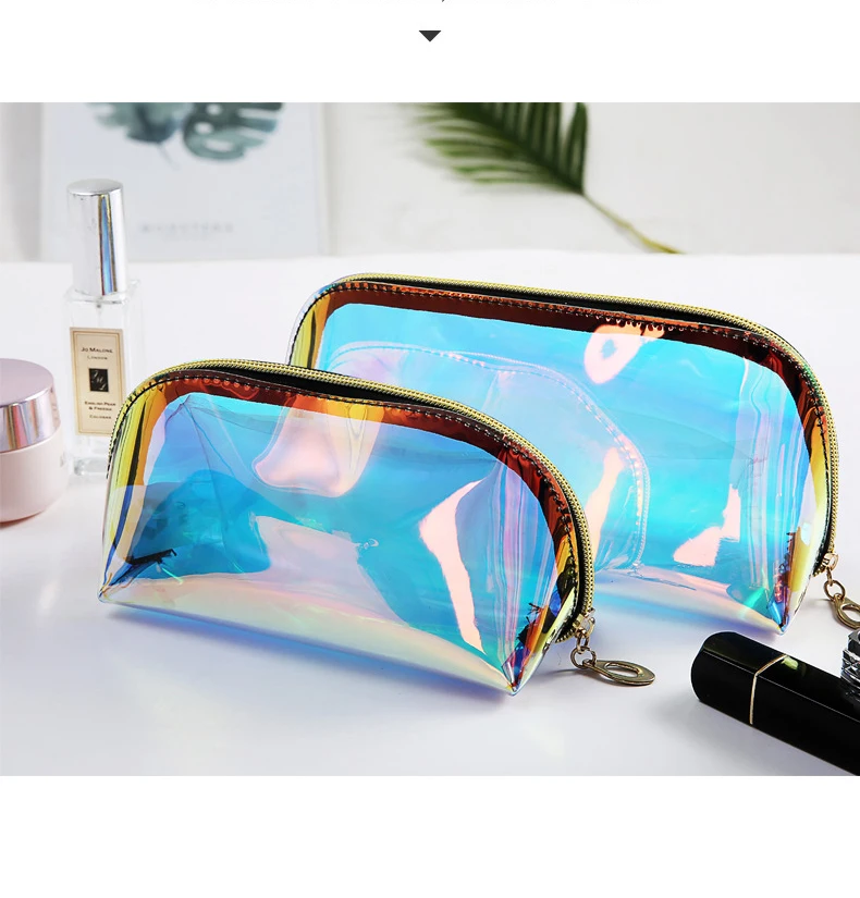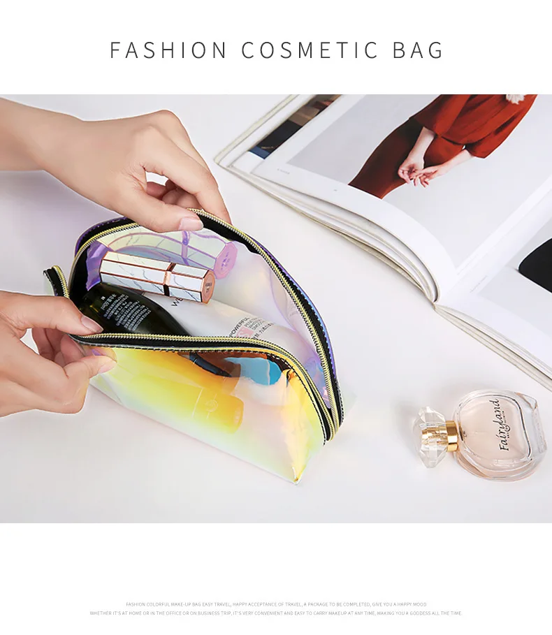 Переливающаяся дорожная косметичка, водонепроницаемая Портативная сумка на золотой молнии для женщин и девочек, прозрачный органайзер для хранения