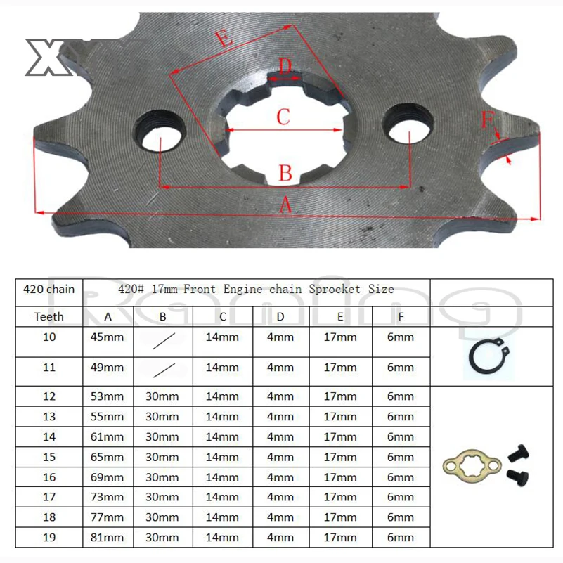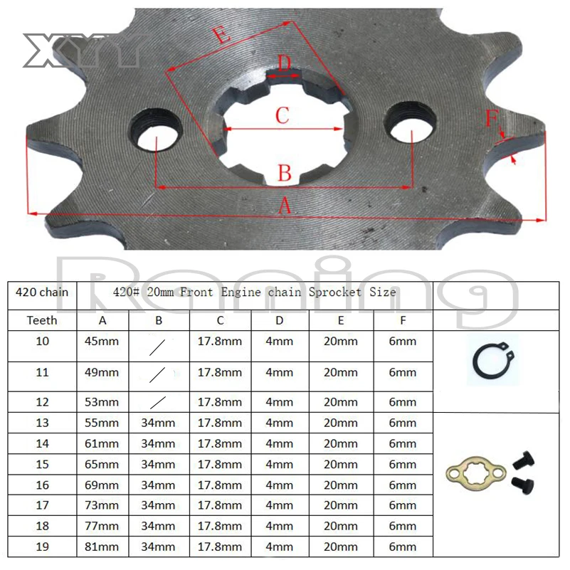 Передний двигатель 420 #17 мм 20 мм 10T 11T 12T 13T 14T 15T 16T 17T 18T 19T зубчатая Звездочка с фиксирующей пластиной замок