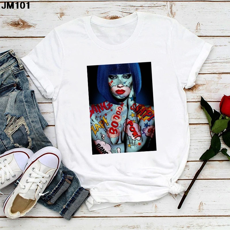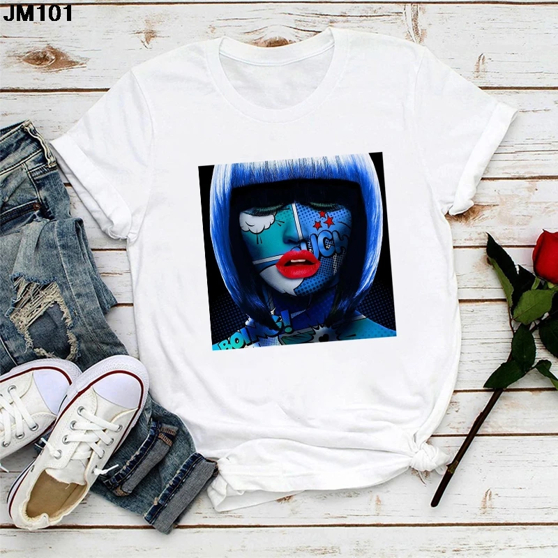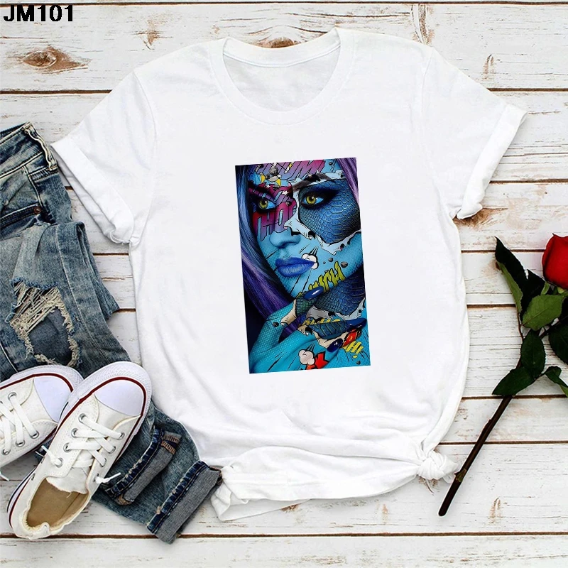 Женские футболки, топы, красочные художественные повседневные футболки для девочек с принтом, женские футболки в стиле Харадзюку с коротким рукавом, Модная белая женская футболка