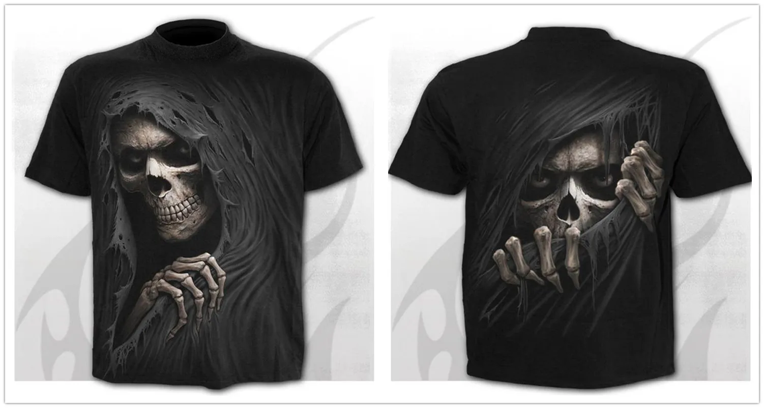 Футболка мужская джинсовая с 3D-принтом черепа, страшная Повседневная рубашка с круглым вырезом, модный топ, уличная одежда для мальчиков, большие размеры, на лето