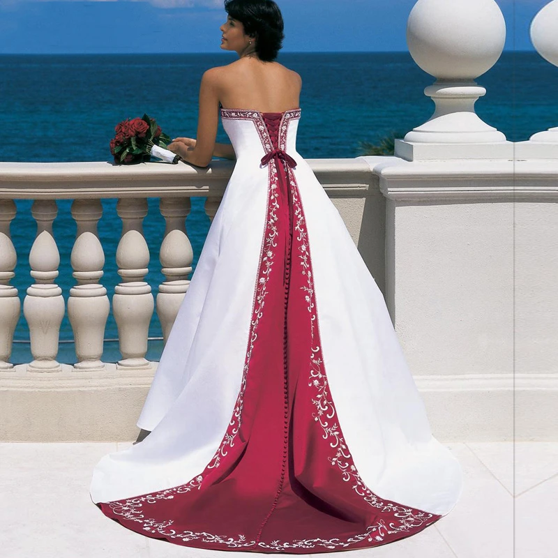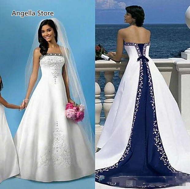 2022 винтажное свадебное платье с вышивкой белое и синее Свадебные платья без бретелей арабское атласное платье невесты со шлейфом