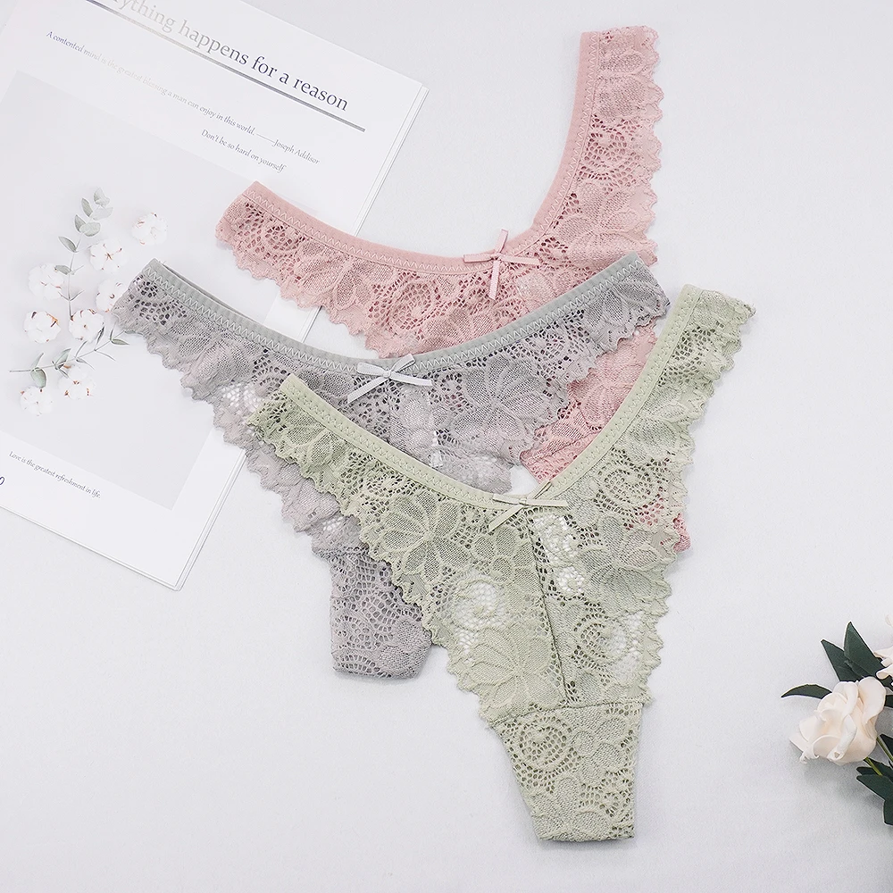 Новые трусики, сексуальные кружевные прозрачные женские трусики-стринги с бантом сзади, женские бесшовные трусики, модное нижнее белье с вышивкой, стринги для женщин