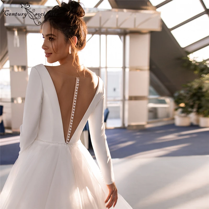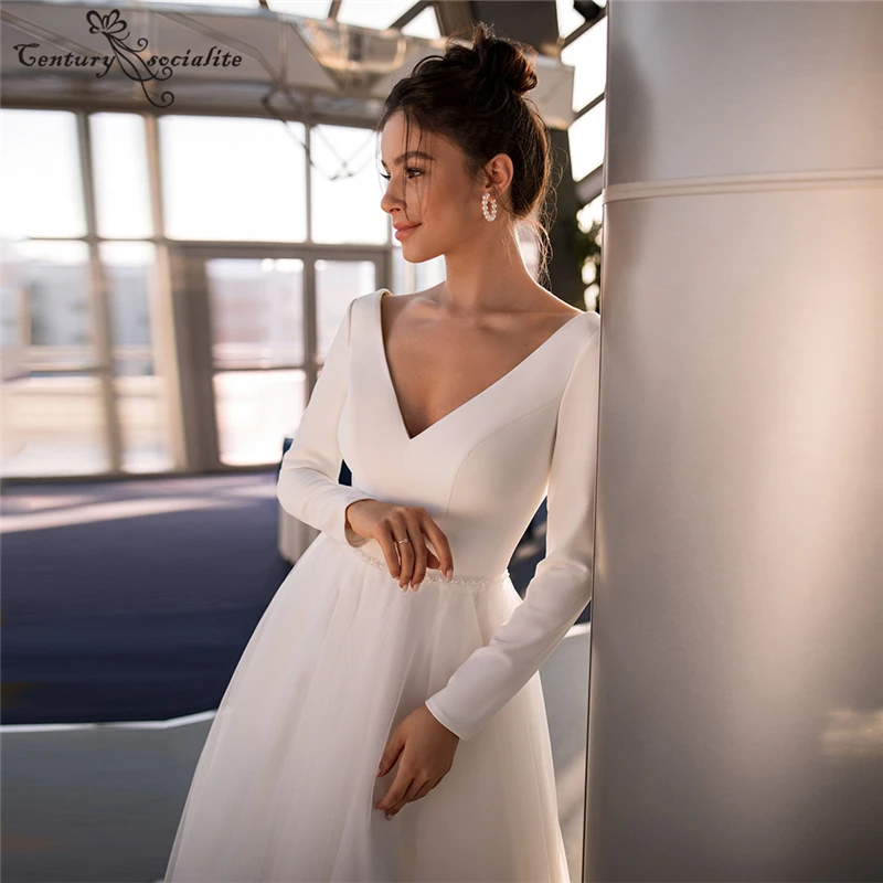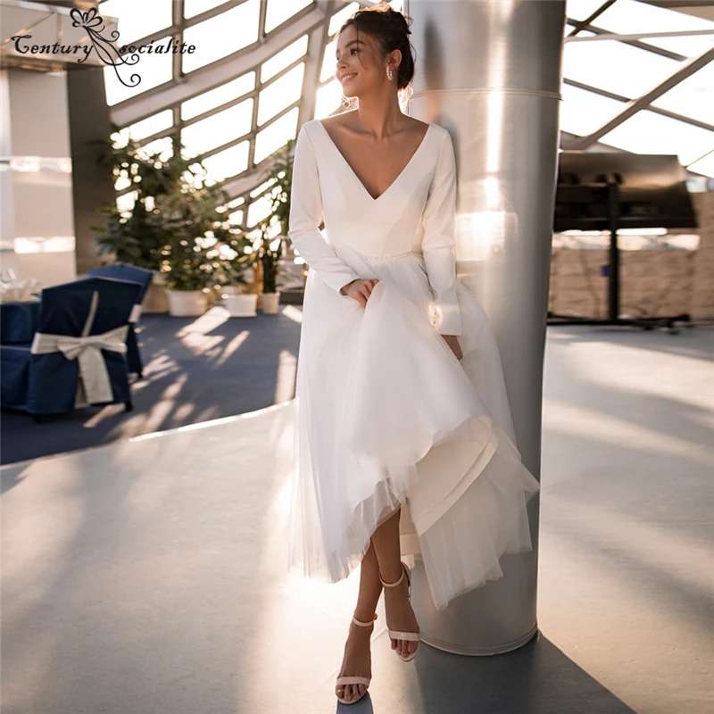 Женское Короткое свадебное платье, простое платье невесты с длинным рукавом и V-образным вырезом, расшитое бисером, длиной до середины икры, 2021