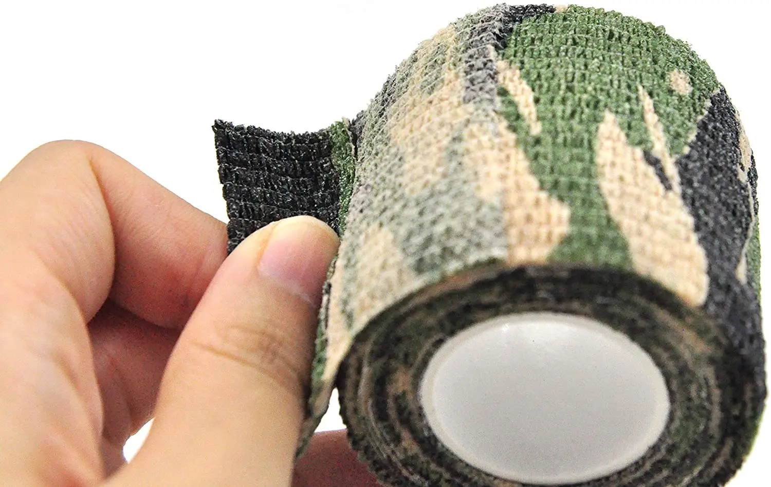 Изделие изготовлено из хлопчатобумажной ткани, нетканой ткани, эластичной ткани, медицинской абсорбирующей марли, спандекса хлопкового волокна, эластичная Нетканая ткань и натуральный каучук покрыты медицинской чувствительной к давлению клеем или натуральным латексом. Охотничья камуфляжная невидимая лента для тех, кто работает на открытом воздухе.