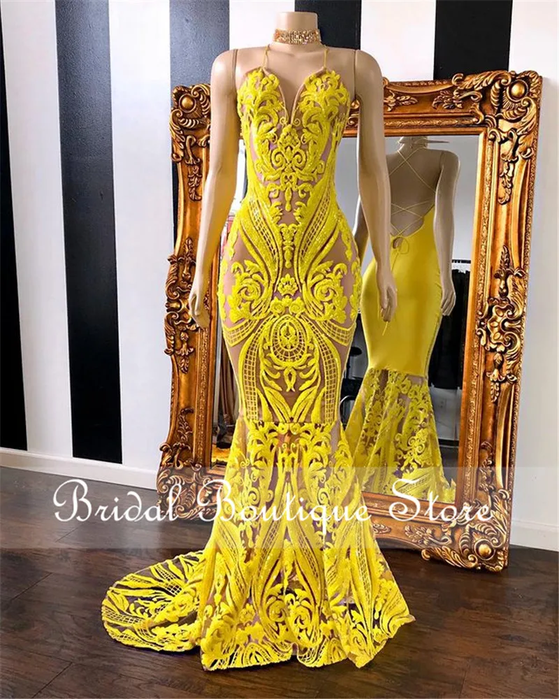 Желтые платья на выпускной для детей, платье без рукавов с блестками русалка сексуальное черное вечернее платье для девочек вечерние платья индивидуальный заказ