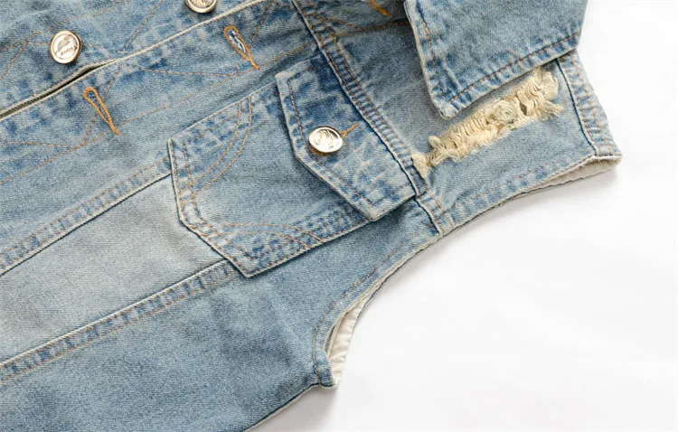 Жилет мужской джинсовый в стиле панк-рок, повседневный ковбойский джинсовый безрукавка с дырками, модная мотоциклетная безрукавка, 2021