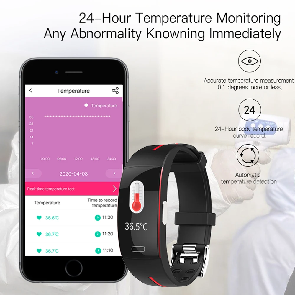 Функции смарт-браслета: Монитор температуры тела, обнаружение ЭКГ, монитор сердечного ритма, AI отчет для ЭКГ, шагомер, напоминание о сообщениях, напоминание о звонках, расстояние, сожженные калории, оповещение о тревоге, здоровье, сенсорная кнопка, сидячие, найдите телефон и т. Д. Посылка включает: 1 X Smartband 1 X Руководство пользователя