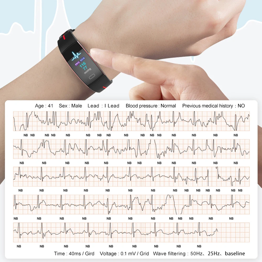 Новый смарт-браслет с PPG ЭКГ Тест температуры тела мониторинг сердечного ритма кровяное давление Спорт водонепроницаемый смарт-браслет