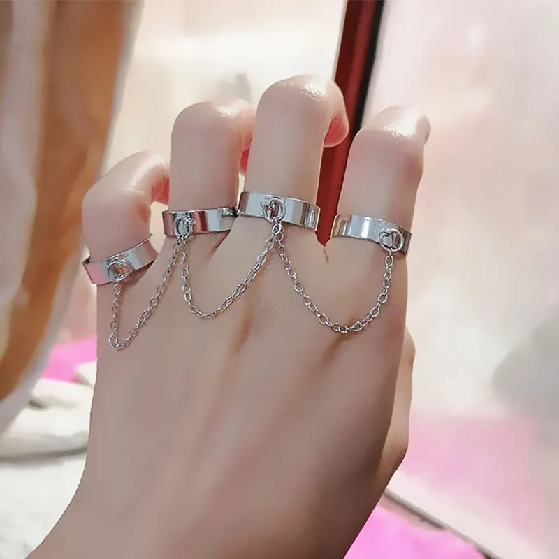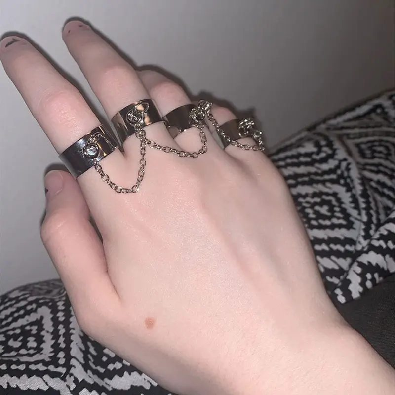 Кольцо в стиле панк, Крутое кольцо, регулируемая цепочка из четырех...