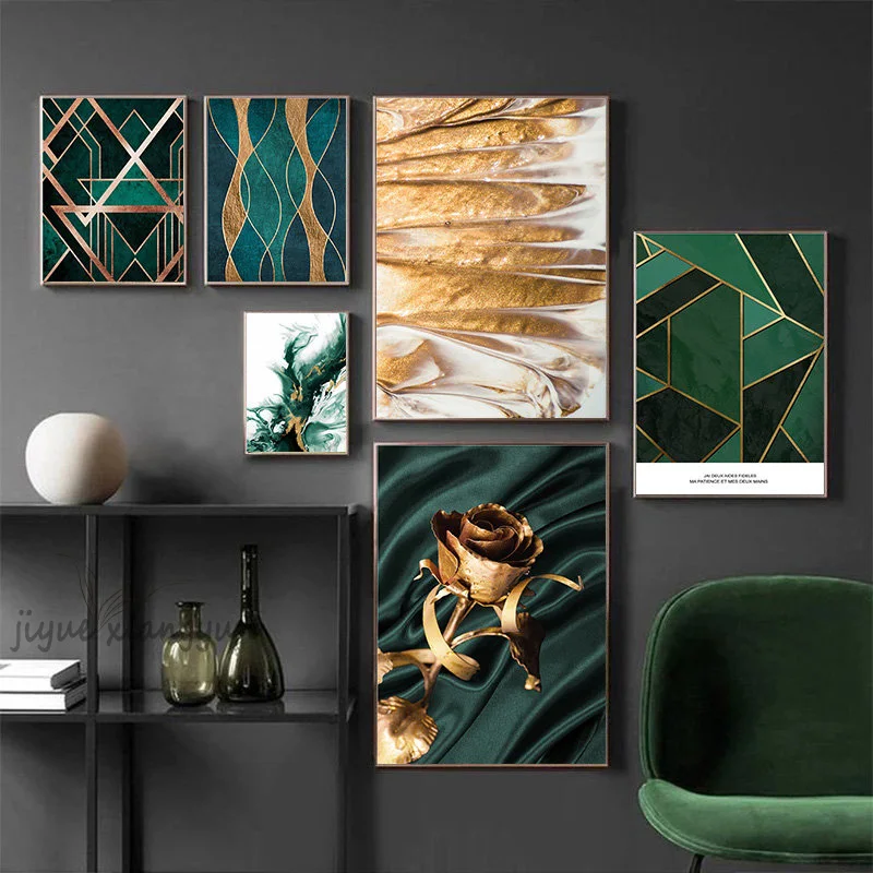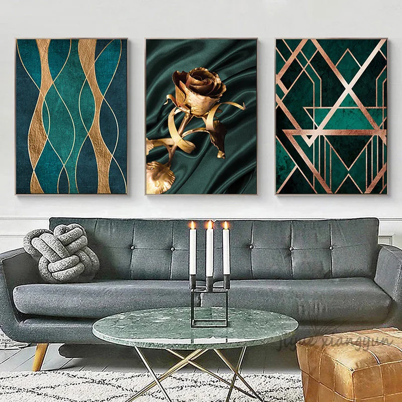 Современные абстрактные золотые фольгированные линии, зеленые холсты, художественные картины для гостиной, спальни, Постер и принты, настенные картины, домашний декор