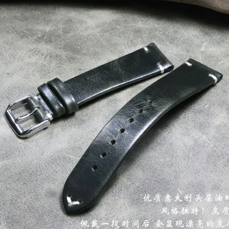 Ретро коричневый хаки синий 22 мм 24 мм Италия натуральная кожа рем...