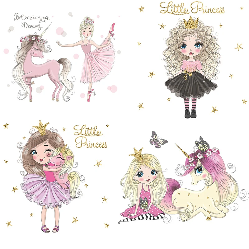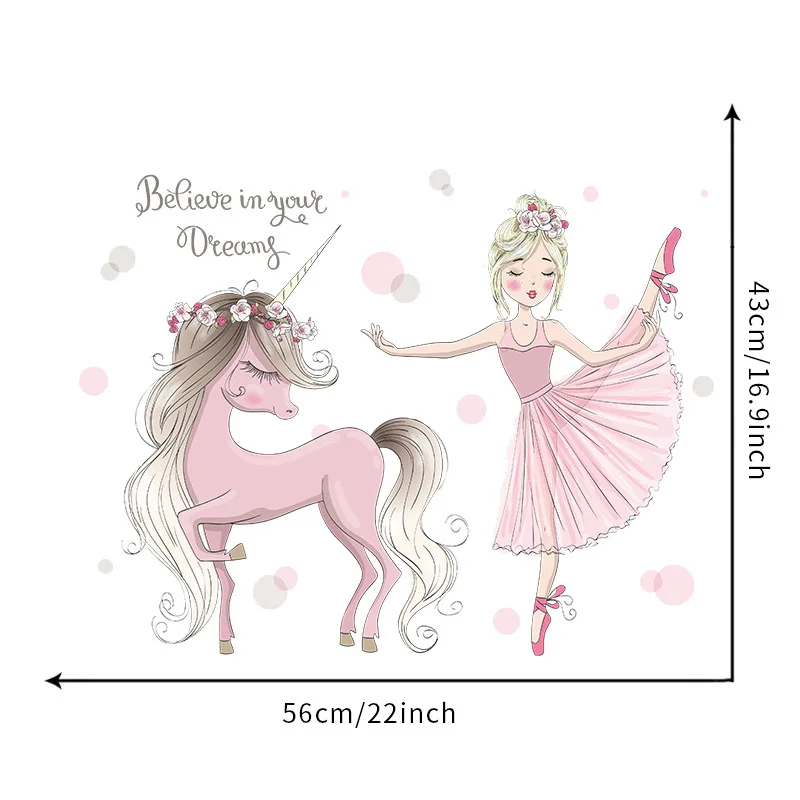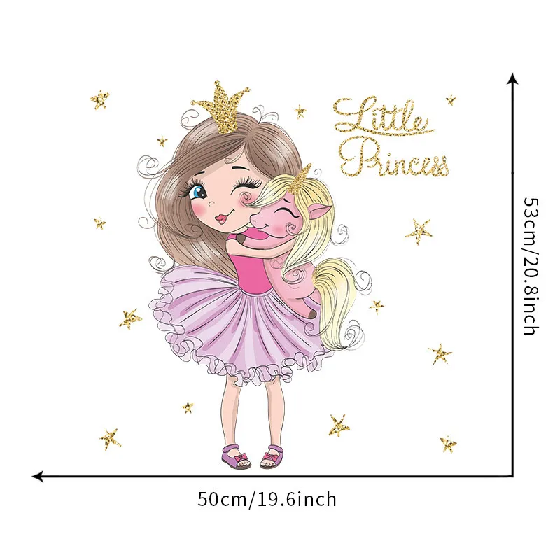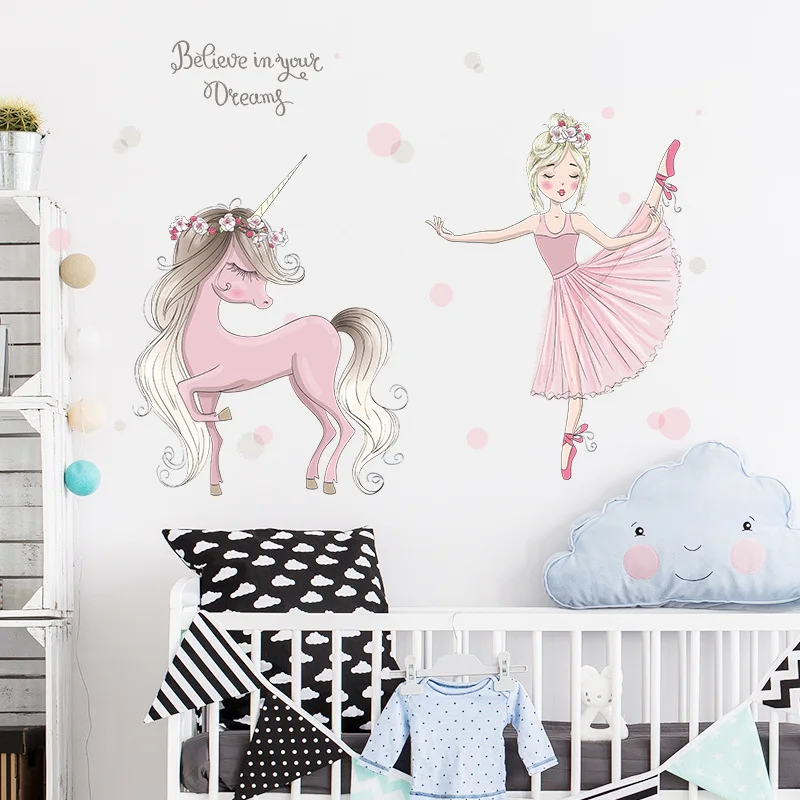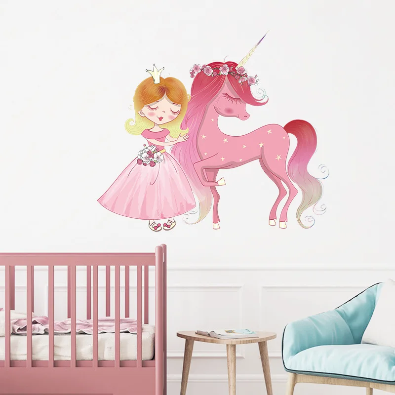 Мультфильм маленькая принцесса и единорог Наклейки на стены виниловые декоративные наклейки на стены украшения для спальни маленькой девочки детская роспись плакат