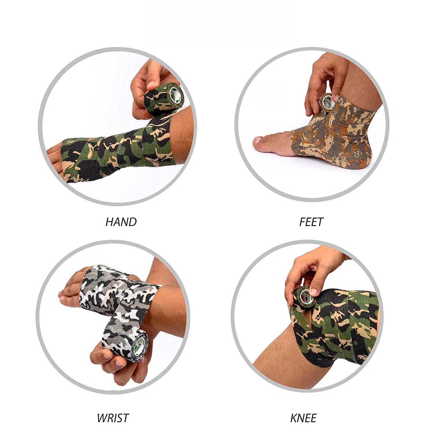 【 Размеры & Package】-каждая рулонная повязка Размеры составляет примерно 2 "x5yd / 5 см х 4,5 м, который является достаточно долго для того, чтобы обернуть любой части тела, которые вы хотите. Упаковка из 12 самоклеющихся повязок камуфляжной расцветки rolll, каждый рулон оснащен полиэтиленовым пакетом индивидуально, легко носить с собой везде, где вы хотите.【Эластичные, дышащие и прочные клеи-изготовлены из эластичного пористого нетканого материала, обеспечивают хорошую вентиляцию, чтобы кожа могла дышать под лентой, что лучше для заживления. Поставляется с самопридерживающейся способностью, обеспечивая отличную поддержку, будет нелегко ослаблять и отпасть от пота или воды.【Мульти Usage】-используется для отеков, повязок, дождя и общей болезненности, что лучше помогает снять отеки и способствует заживлению. Он может быть применен для обертывания многих частей тела, таких как локоть, лодыжки, запястья, плеча, колена, пальца, носка, икры, пальмы, растяжения и многое другое; его также можно использовать для обертывания ран домашних животных.【Легко использовать 】-связная обертка не требует клея или штифтов, легко обернуть любую форму только приклеивается к себе и легко отклеивается без клея.[Примечание] -- не связывайте последний поворот с кожей, и он должен быть полностью закрыт передний поворот, чтобы обеспечить хорошую посадку. Кроме того, не оберните повязку непосредственно на рану, она должна быть покрыта стерильными экстрактами после дезинфекции, а затем перевязана.
