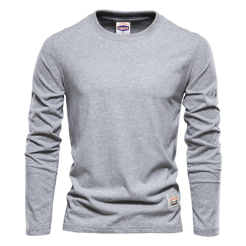 Мужская однотонная Весенняя Повседневная футболка, 100% хлопок, футболка с длинным рукавом, высококачественные мужские топы, классическая одежда, мужские футболки