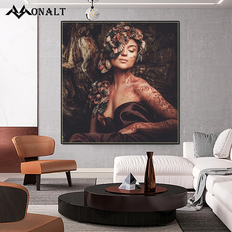 Тату-девушка с цветами на голове в Волшебном лесу, винтажная Картина на холсте, ПОРТРЕТНАЯ ФОТОГРАФИЯ, Настенная картина для декора спальни