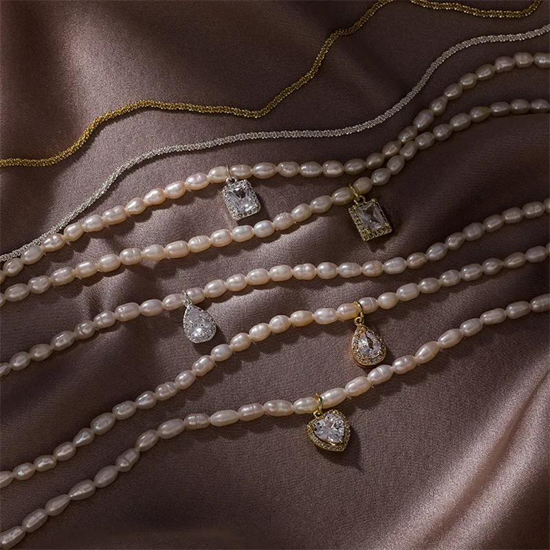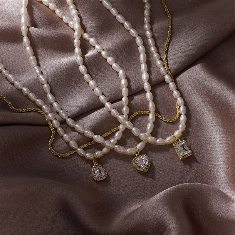 Ожерелье XIALUOKE с подвеской в форме сердца женское, элегантное ожерелье из пресноводного жемчуга с геометрическим дизайном в стиле ретро
