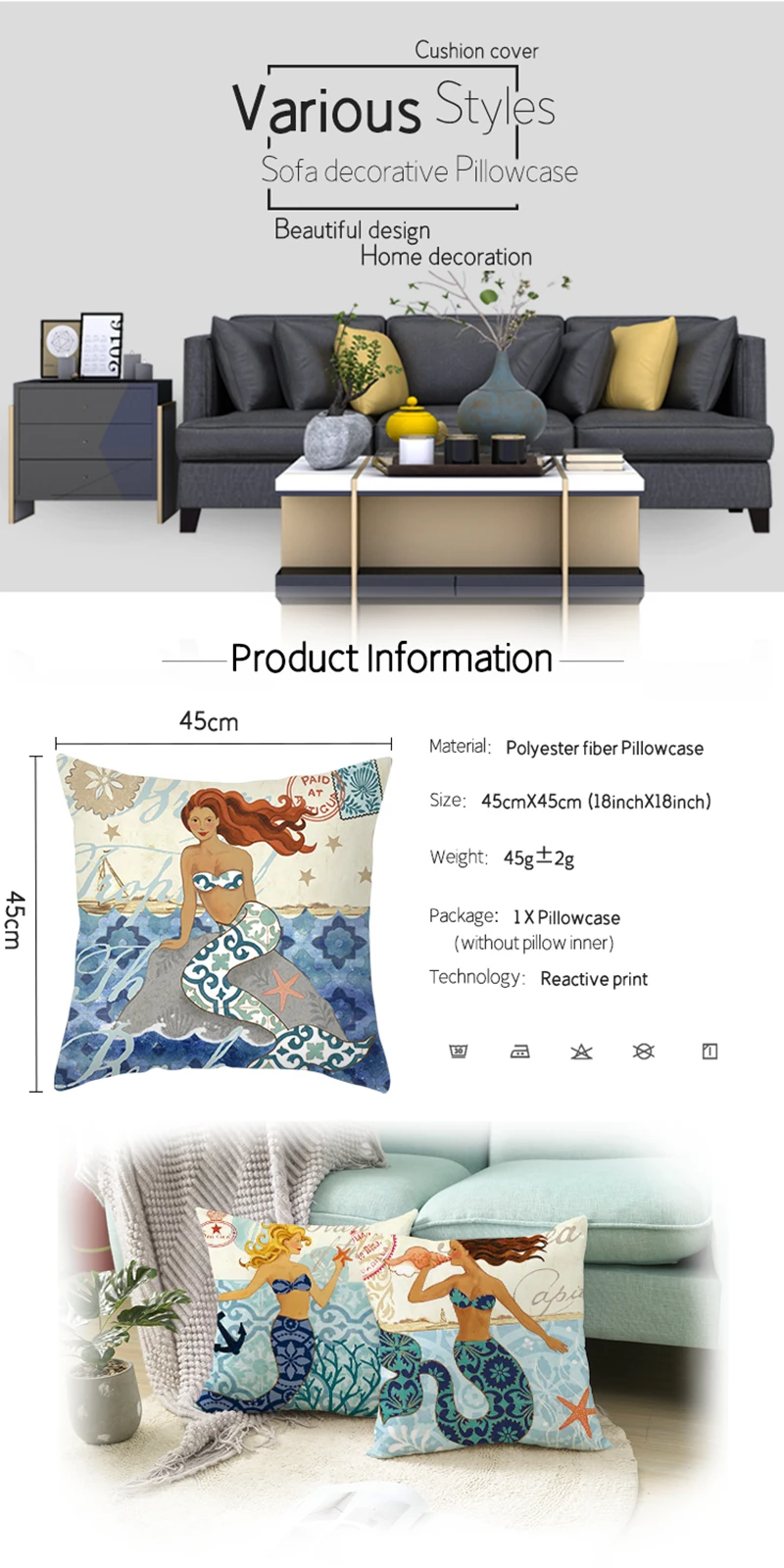 Наволочки с морскими организмами, 45x45 см, полиэстер, наволочка с ...