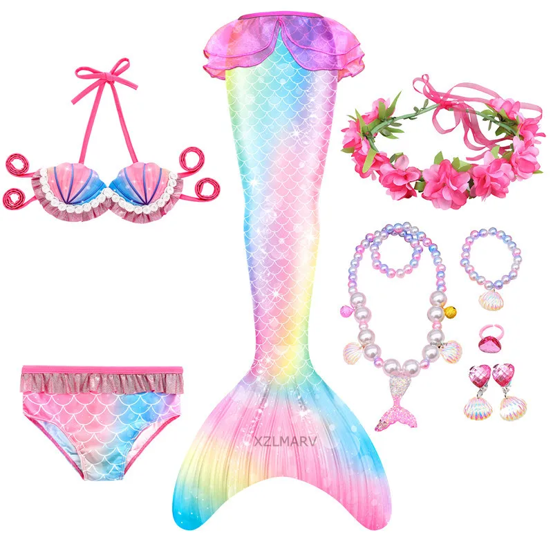 Купальный костюм для девочек с хвостом русалки, детский купальный костюм для косплея, пляжные костюмы бикини с фантазией, с моноластом