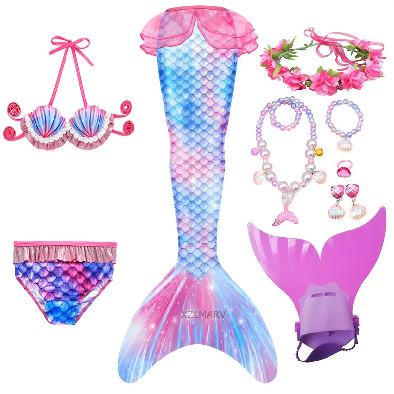 Купальный костюм для девочек с хвостом русалки и плавниками, купаль...