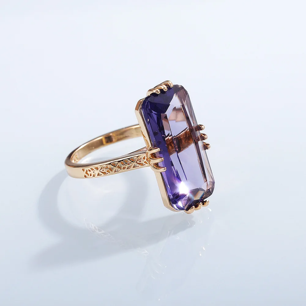 Роскошные блестящие негабаритных фиолетовое кольцо из циркона, имеет женскую индивидуальность, модное ювелирное изделие, выпускных вечеров и предложение кольцо