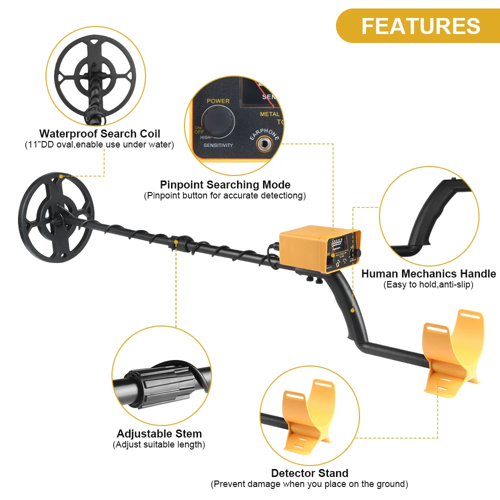 Нужно найти золотые и серебряные ювелирные изделия, монеты и другой металл в земле? Попробуйте этот. Благодаря этому мощному и универсальному металлоискателю вы можете охотиться на монеты, реликвии, ювелирные изделия, золото и серебро повсюду. Он также широко используется при обнаружении алюминия, меди и редких металлов и в любом месте, где должен быть обнаружен скрытый металл.