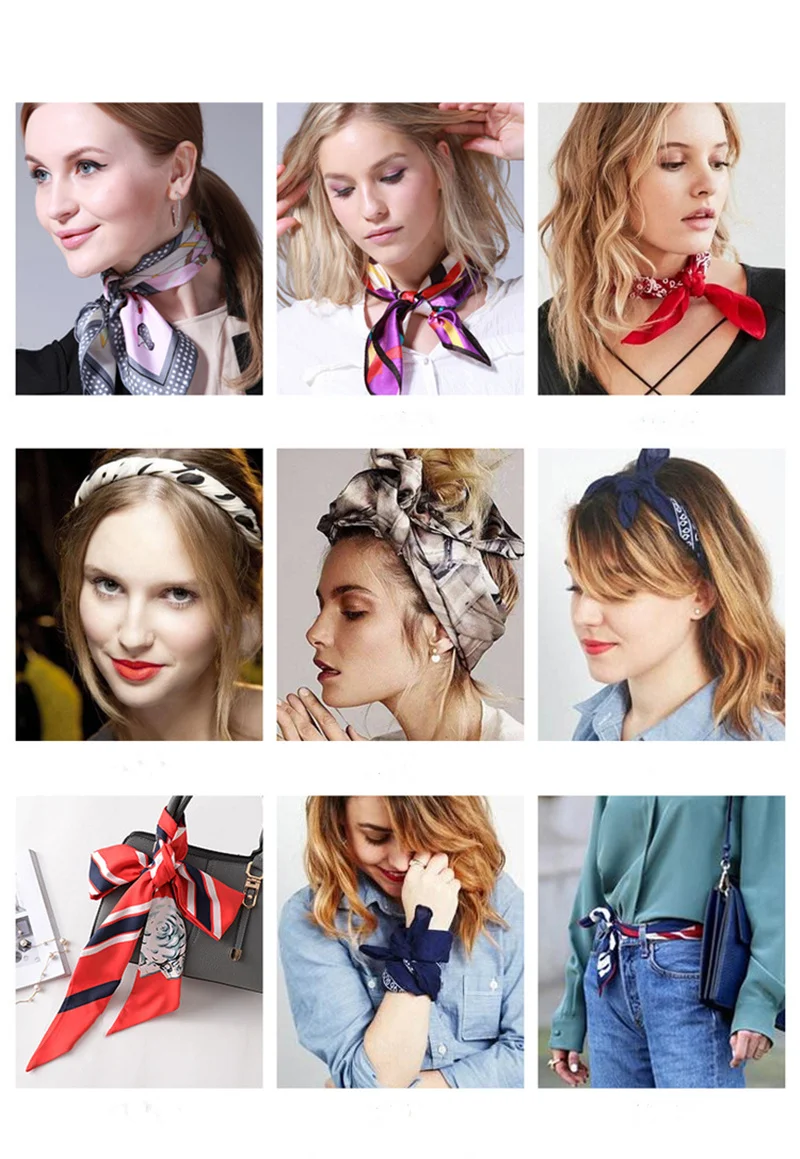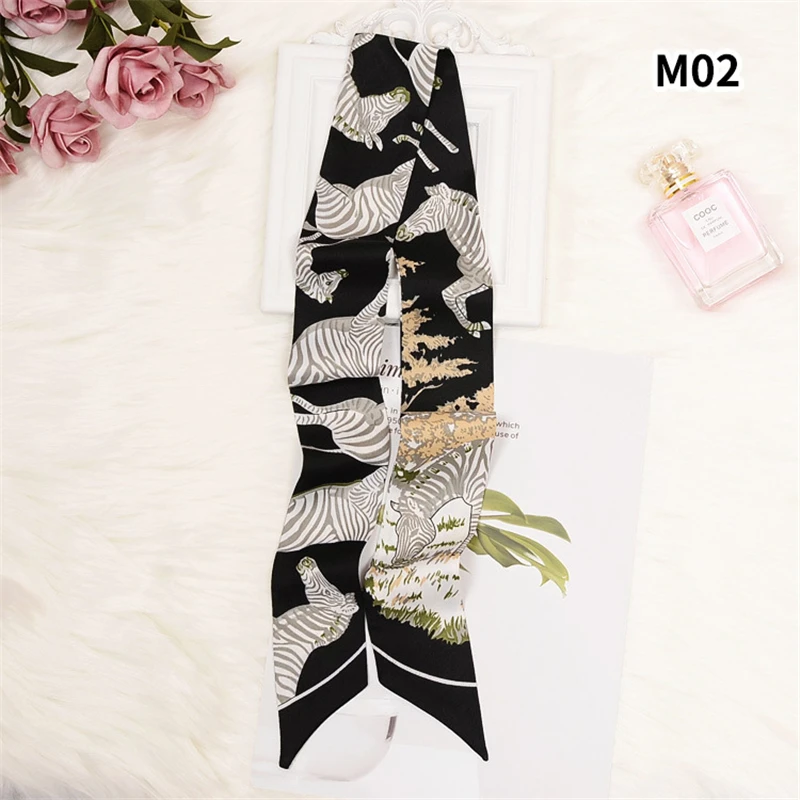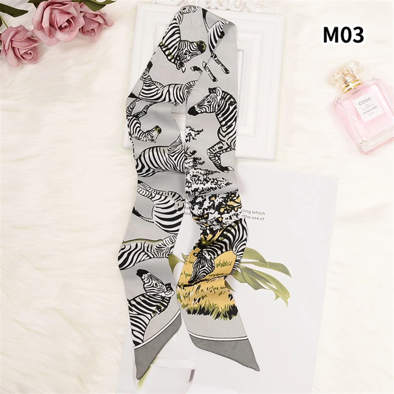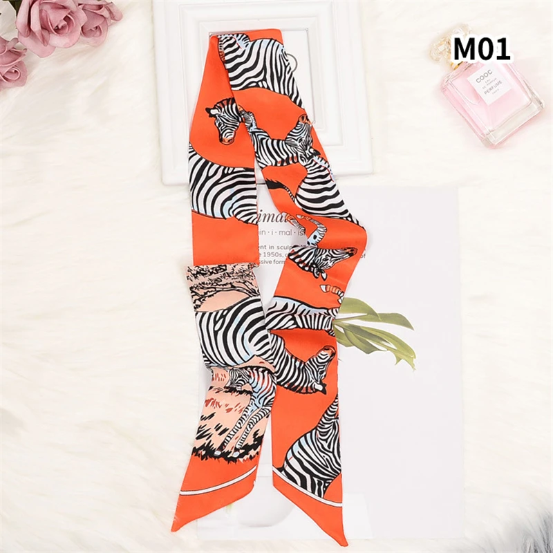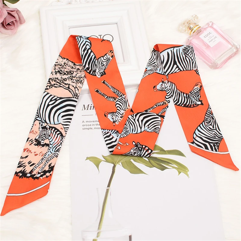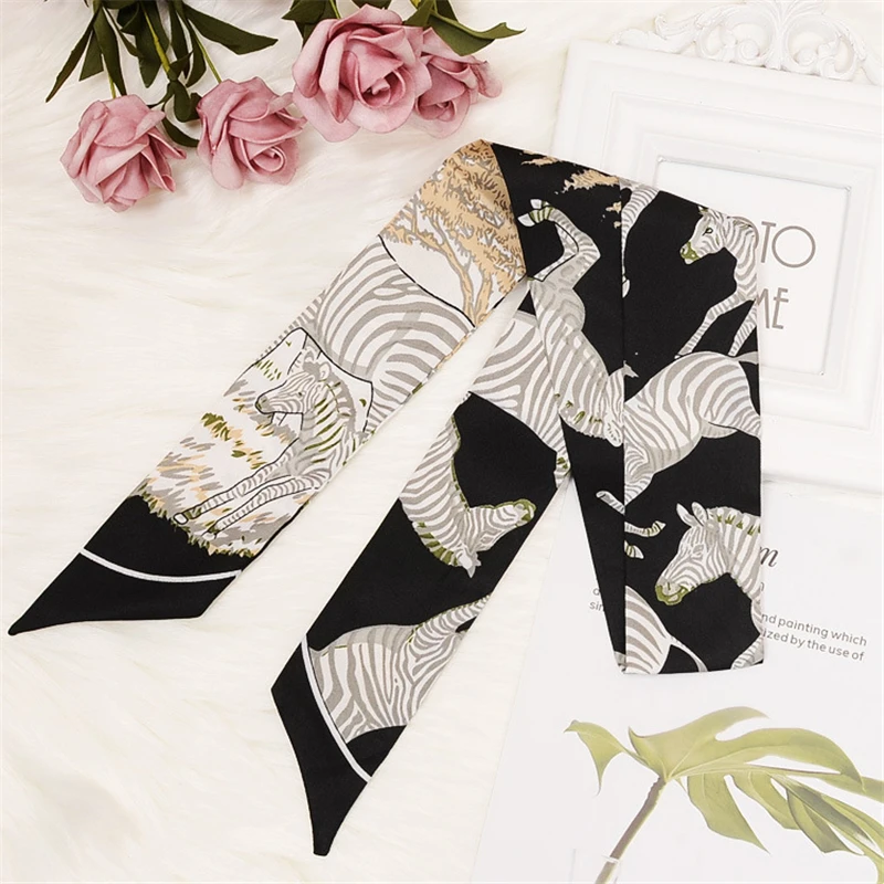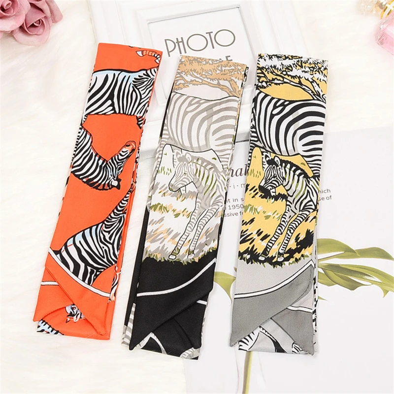 Новый стиль платок с принтом зебры Роскошные брендовые многофункциональные женские шелковые шарфы модный тюрбан галстуком-бабочкой на одной ручке маленькая лента BS13