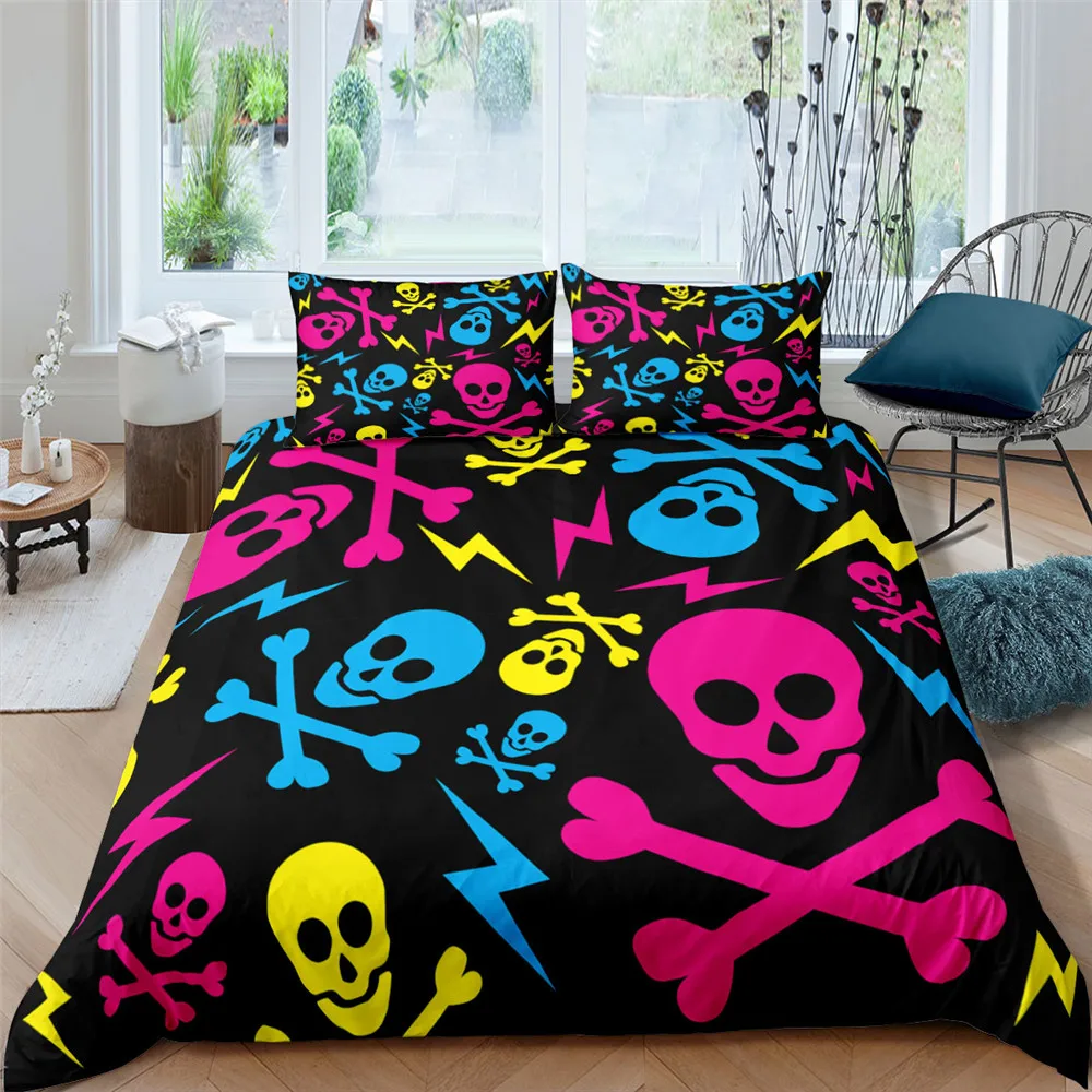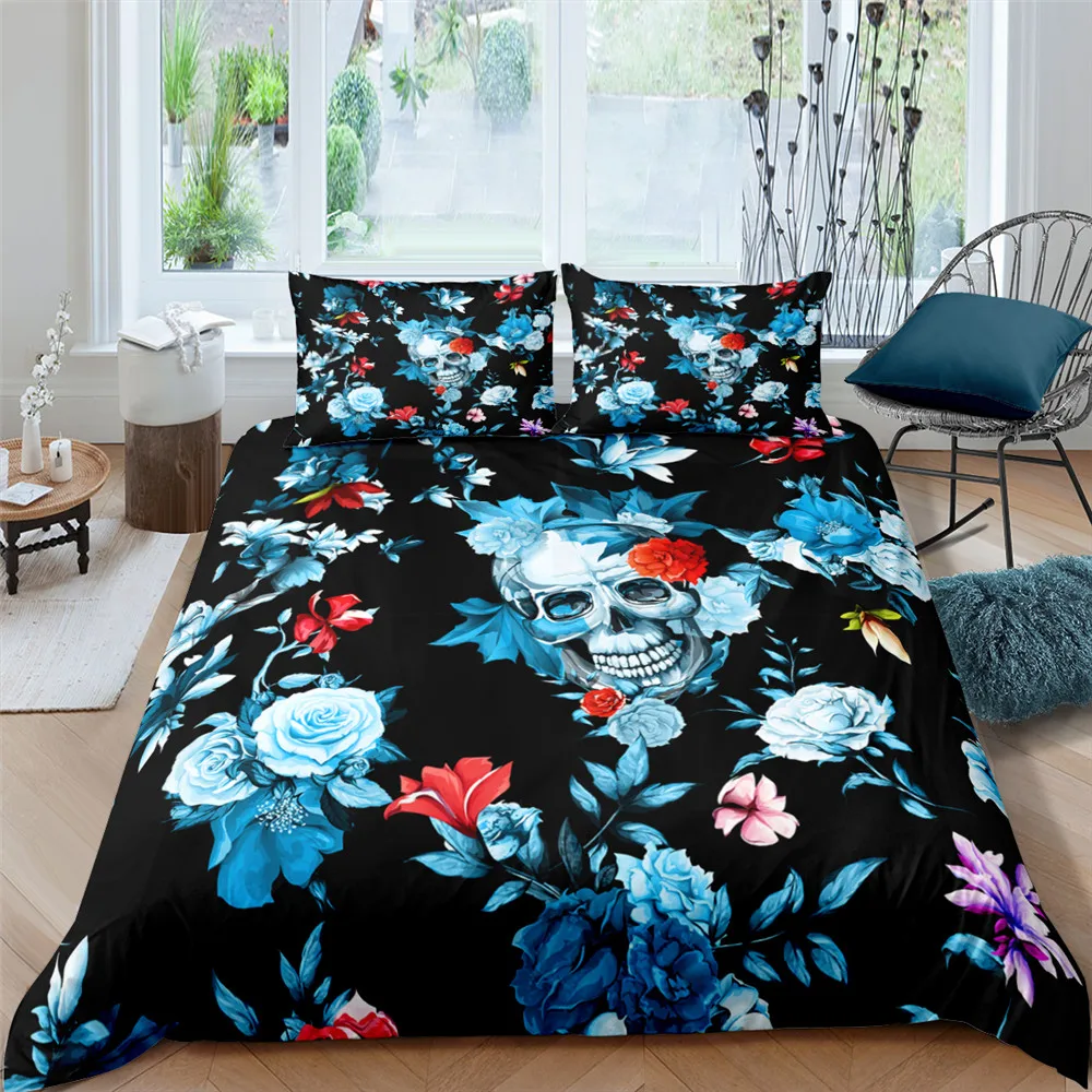 Комплект постельного белья с 3d-изображением черепа и красной розы, пододеяльник с цифровым принтом, наволочка, 23 шт., постельный комплект, односпальныйдвухспальныйПолныйКоролевский размер