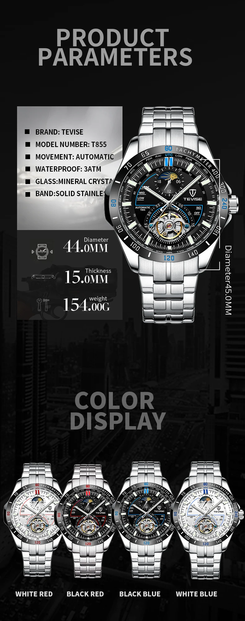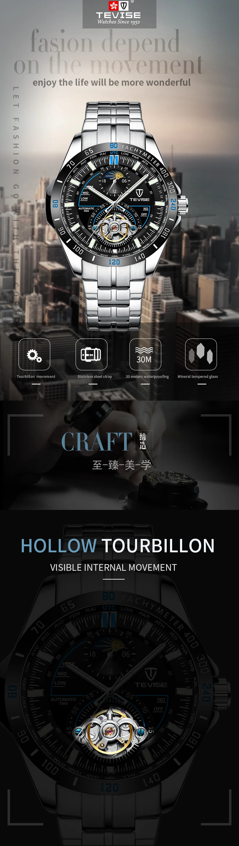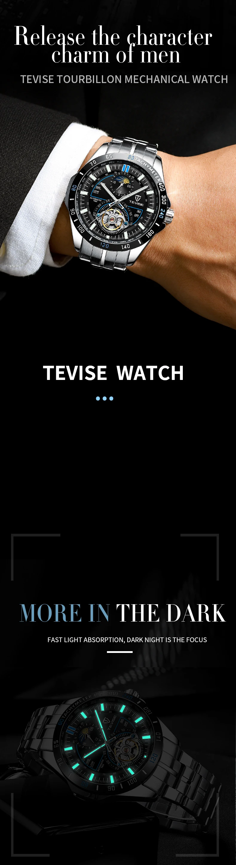 Механические часы Tevise, модные мужские автоматические часы, деловые водонепроницаемые наручные часы, мужские часы, Прямая поставка