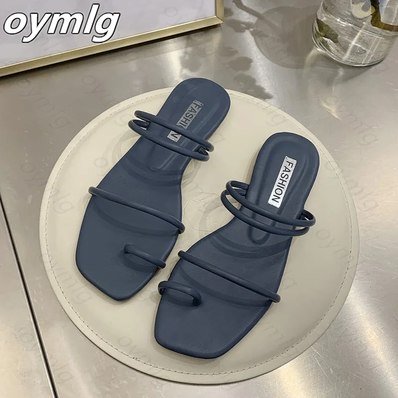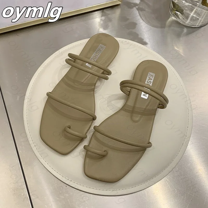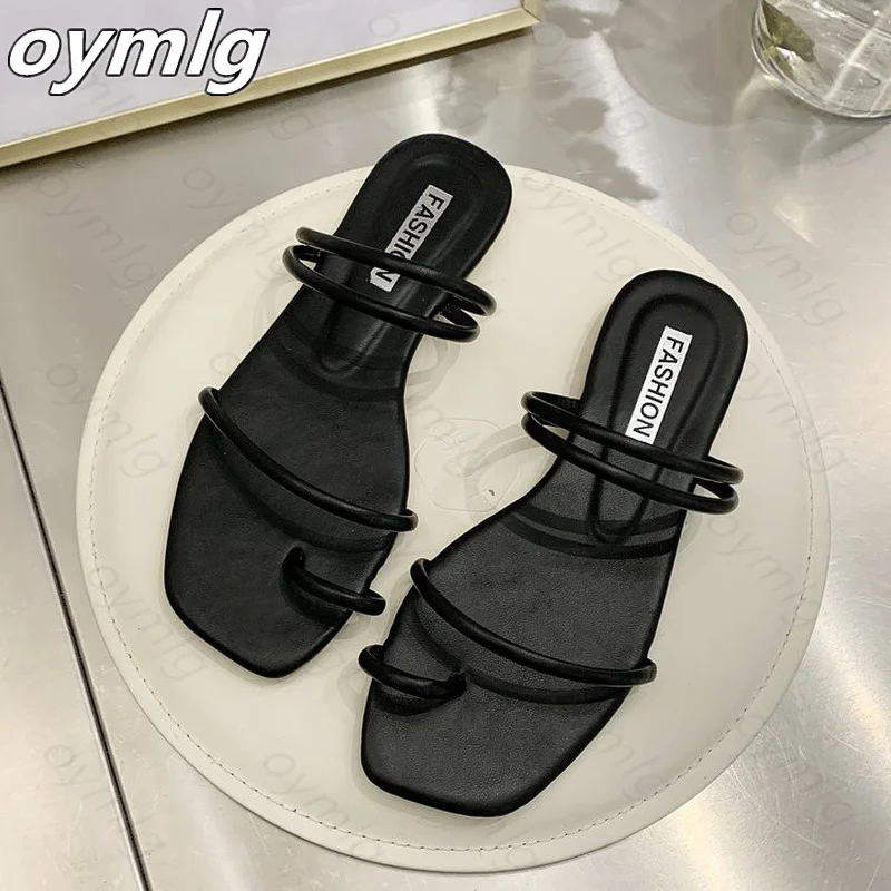 Новинка лета 2021, сандалии на плоской подошве в Корейском стиле, с квадратным носком и ремешком, женские сандалии на плоской подошве, сандалии для женщин