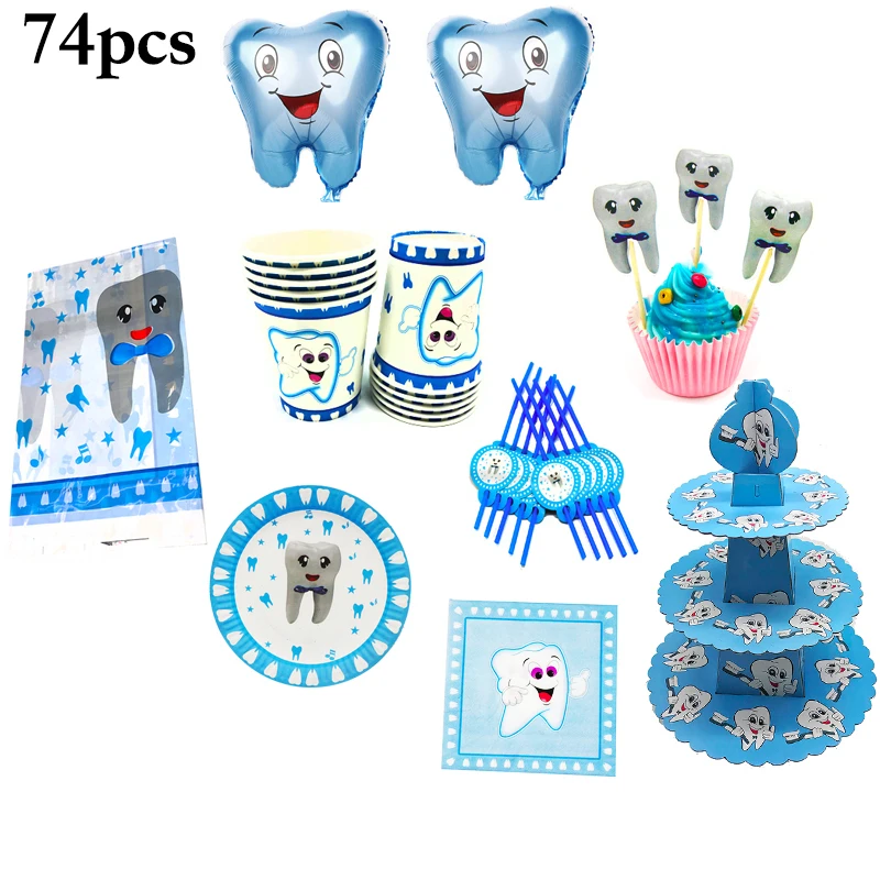109 шт. синий зубы Бумага салфетки пластины чашки соломинки Шапки в...
