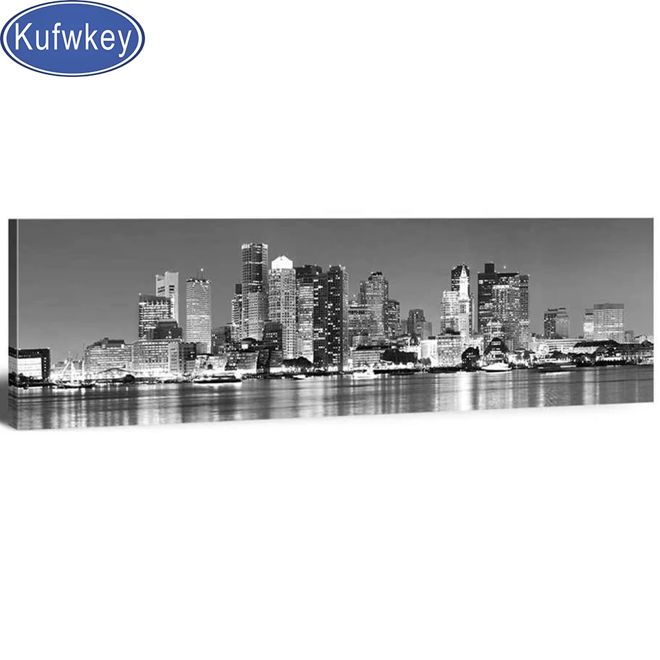 Большая 5D DIY алмазная живопись Черно-белая панорамная Бостонский горизонт Современная полная квадратная круглая Алмазная вышивка домашний декор